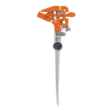 Aspersor metálico doble chorro, una vía, estaca de 11'