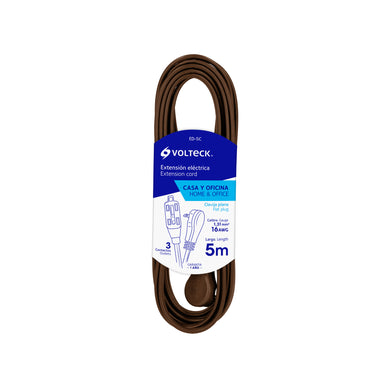 Extensión eléctrica doméstica, 5 m, café, Volteck