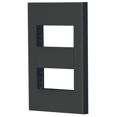 Placa 2 ventanas, 6 módulos, línea Española, color negro