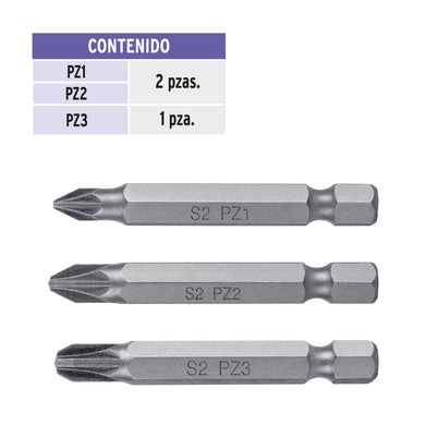 Juego de 5 puntas Pozidriv, largo 2', blister