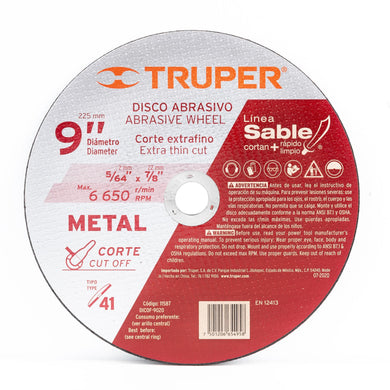 Disco Tipo 41 para corte fino de metal Línea Sable 9', 2mm
