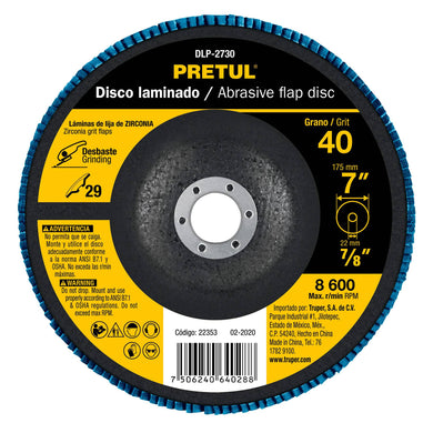 Disco laminado, 7', grano 40, centro 7/8', Pretul