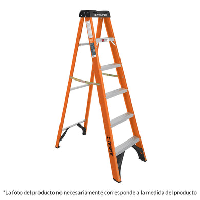 Escalera de tijera, tipo ll, 5 peldaños, fibra de vidrio
