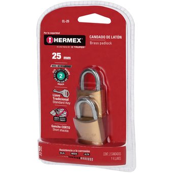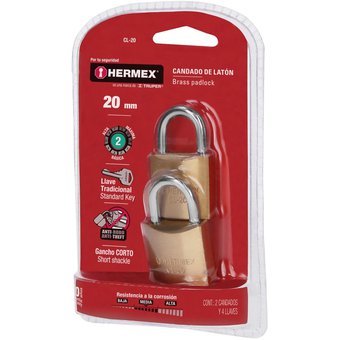 Candados de latón, 20mm, blister 2 piezas, Hermex Basic