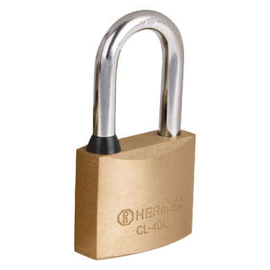 Candado de latón, 40mm, gancho largo, blister, Hermex Basic