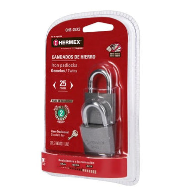 Candados de hierro, 25mm, gancho corto, blister, 2 piezas