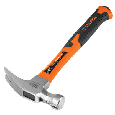 Martillo pulido, uña curva 16 oz, mango de fibra de vidrio