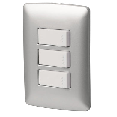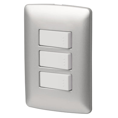 Placa armada 3 interruptores sencillos,plata, línea Italiana