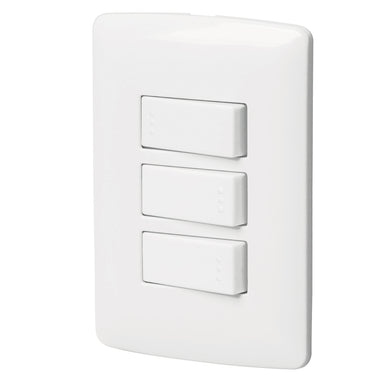 Placa armada 3 interruptores sencillos, línea Oslo, blanco