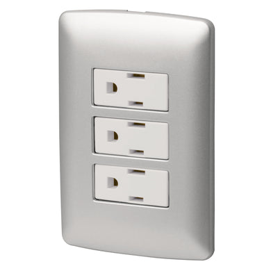 Placa armada 3 contactos aterrizados, plata, línea Italiana
