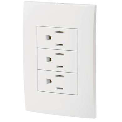 Placa armada 3 contactos aterrizados, blanco, línea Italiana