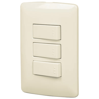 Placa armada 3 interruptores sencillos,marfil,línea Italiana