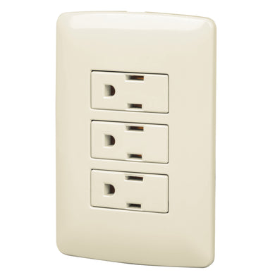Placa armada 3 contactos aterrizados, marfil, línea Italiana