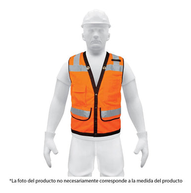 Chaleco de seguridad reforzado, con bolsas, naranja, mediano