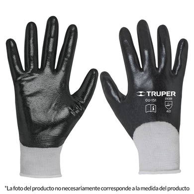Guantes de poliéster con recubrimiento de nitrilo, grandes