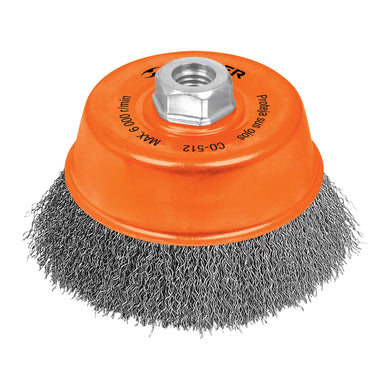 Carda de copa, alambre ondulado grueso, 5x5/8' para esmeril