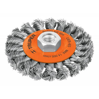 Carda trenzada tipo cónico 4' para esmeriladora, milimétrica