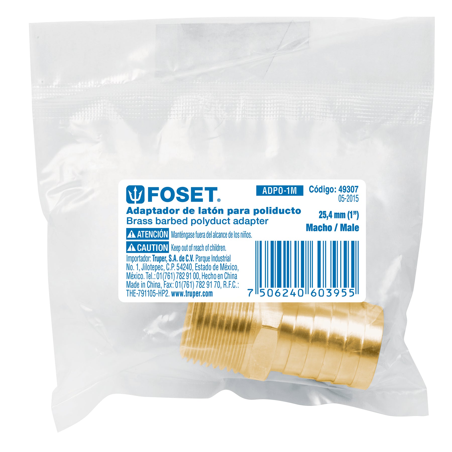 Adaptador para poliducto, 1", macho