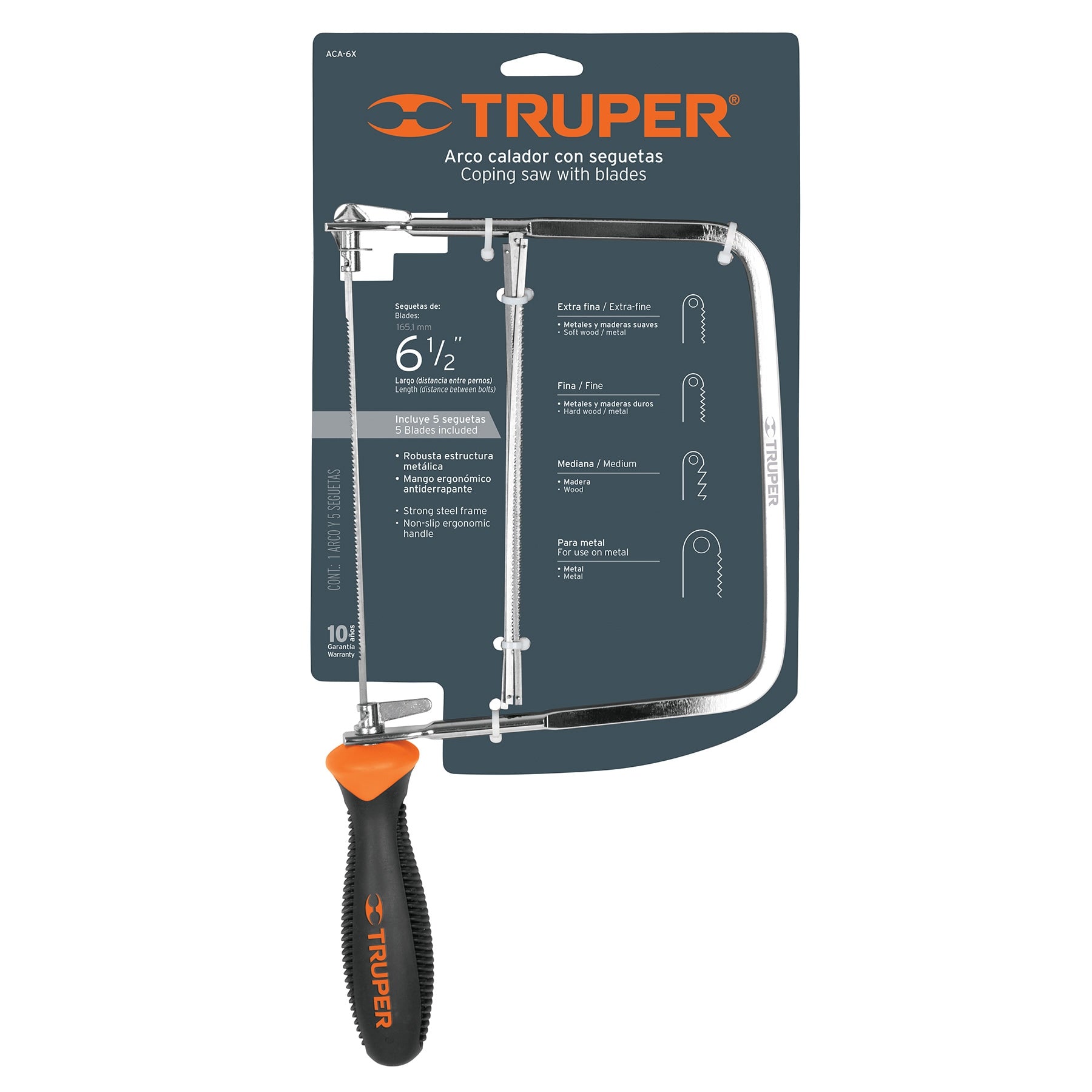 - Incluye 5 seguetas de 6 1/2" (17 cm) para cortar cualquier material: extrafina, fina, mediana y para metal