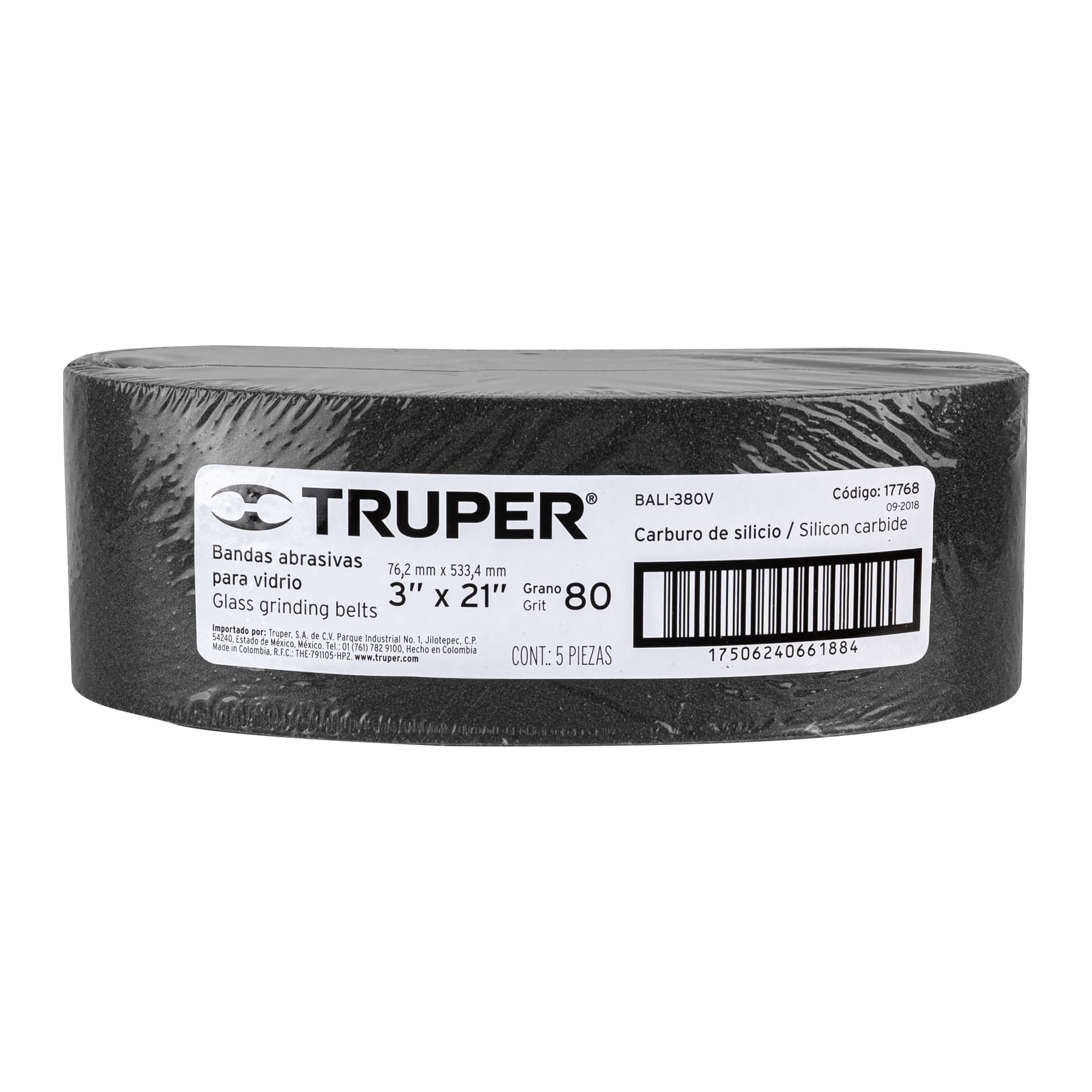 Banda de lija para vidrio 3 X 21" grano 80