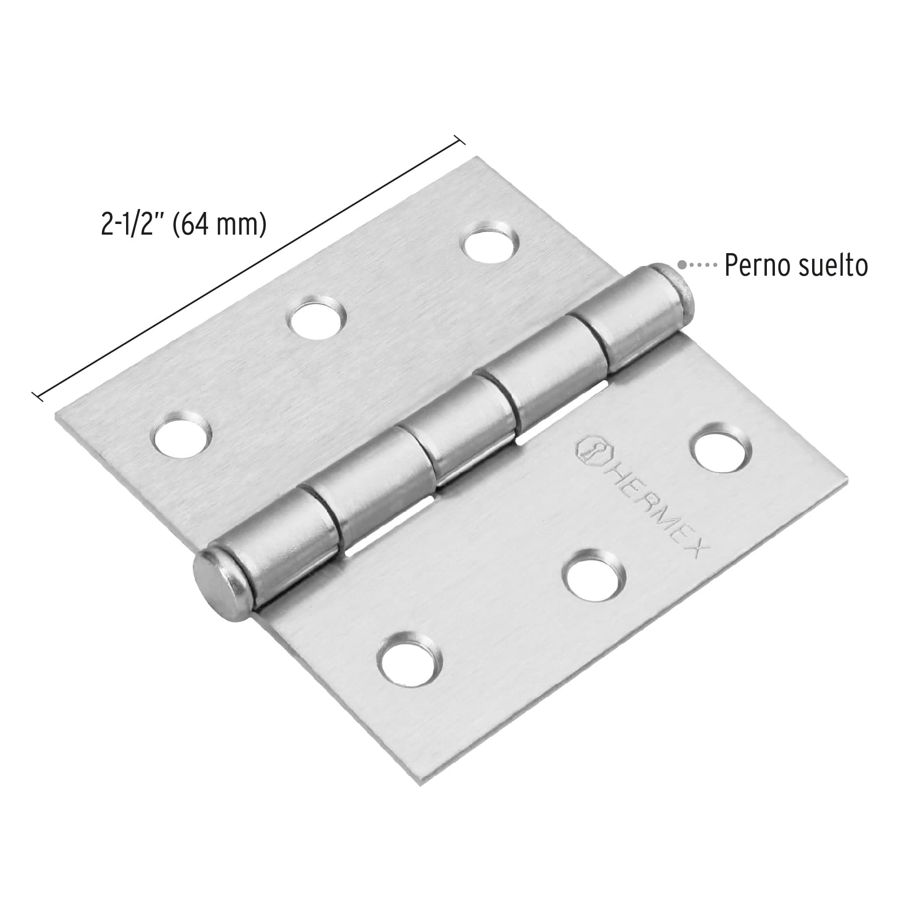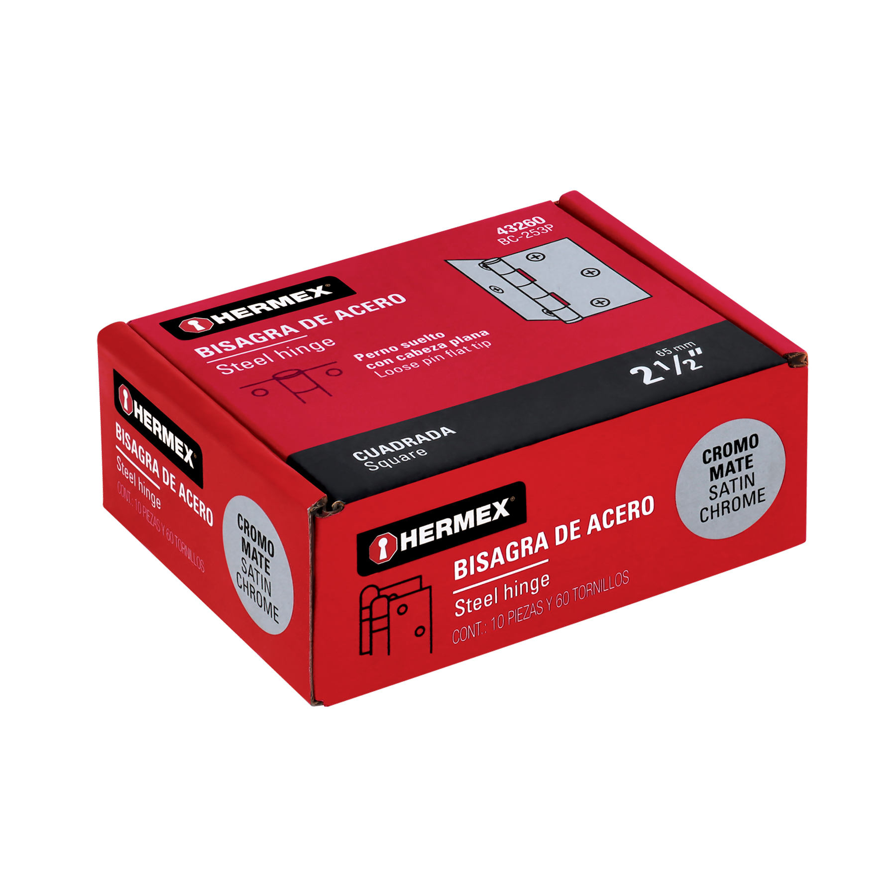 Bisagra cuadrada 2-1/2", acero cromo mate, plana