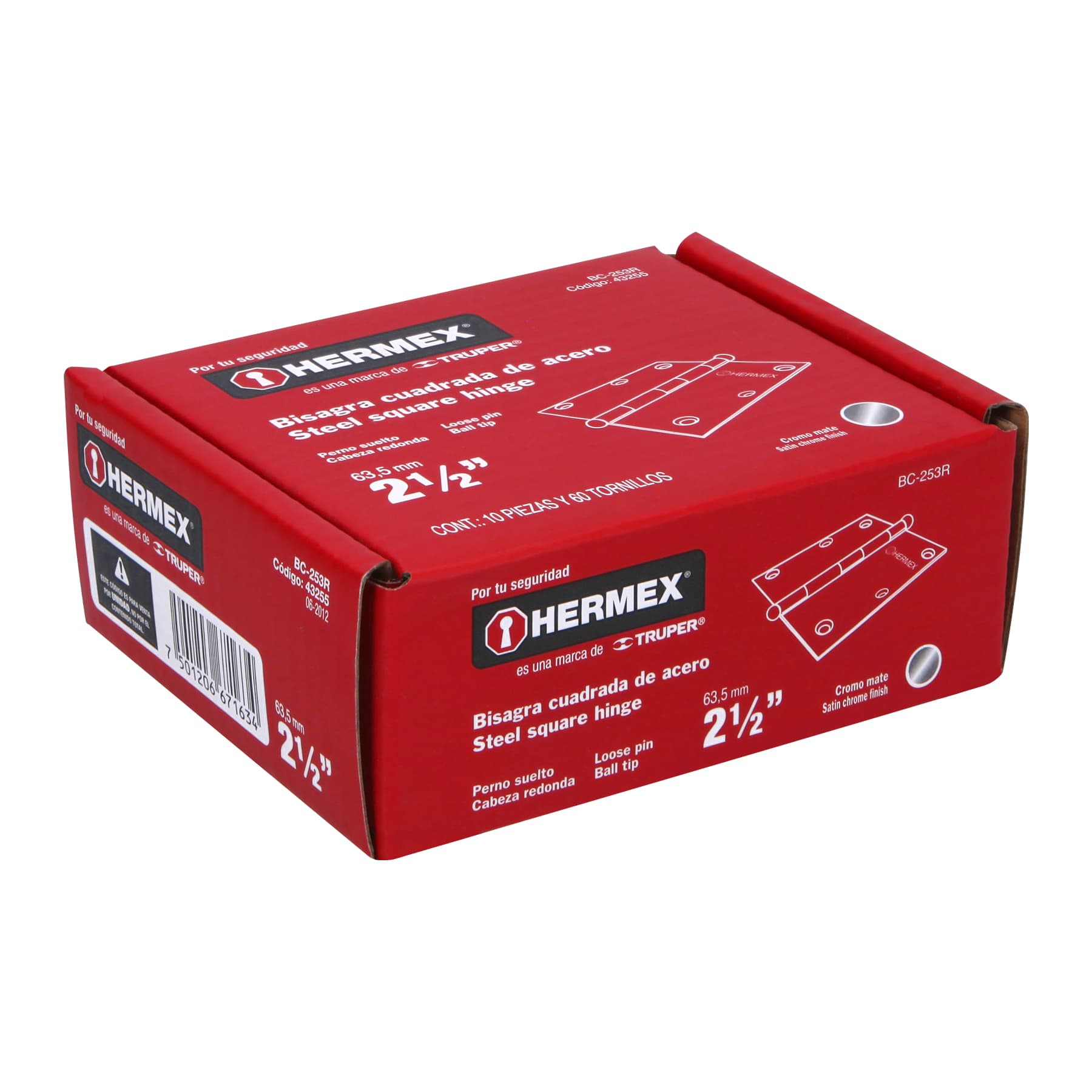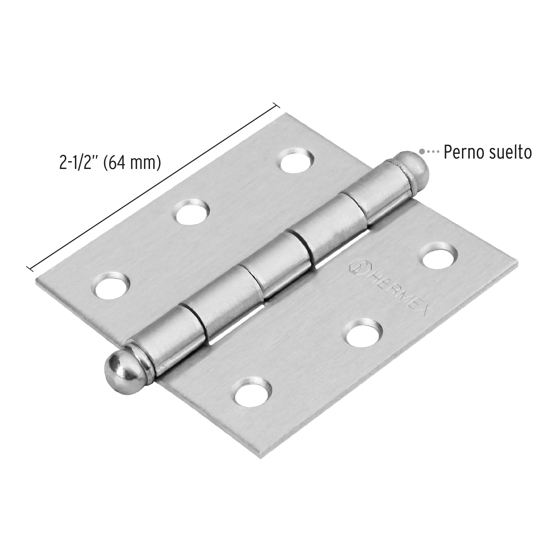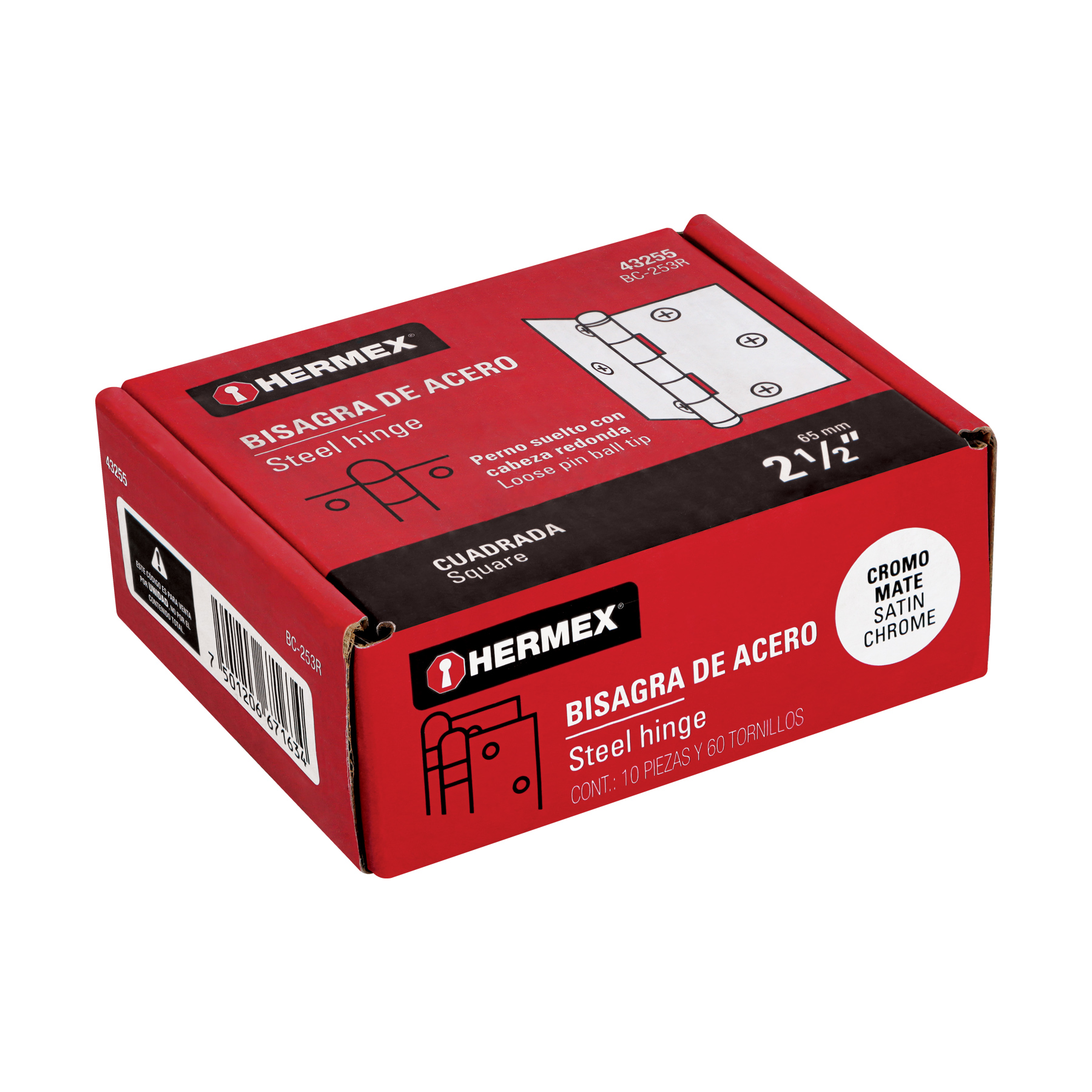 Bisagra cuadrada 2-1/2", acero cromo mate, redonda