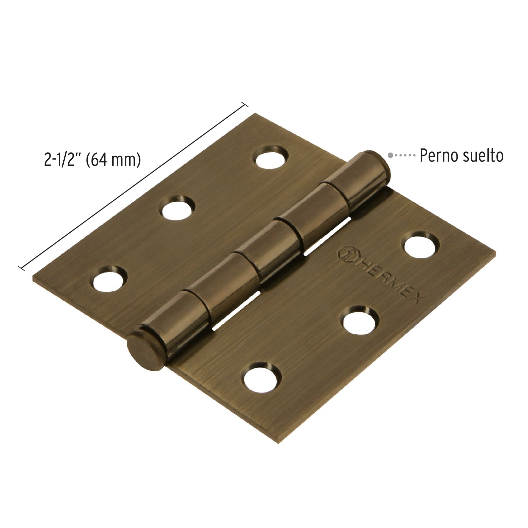 Bisagra cuadrada 2-1/2", acero latonado antiguo, plana