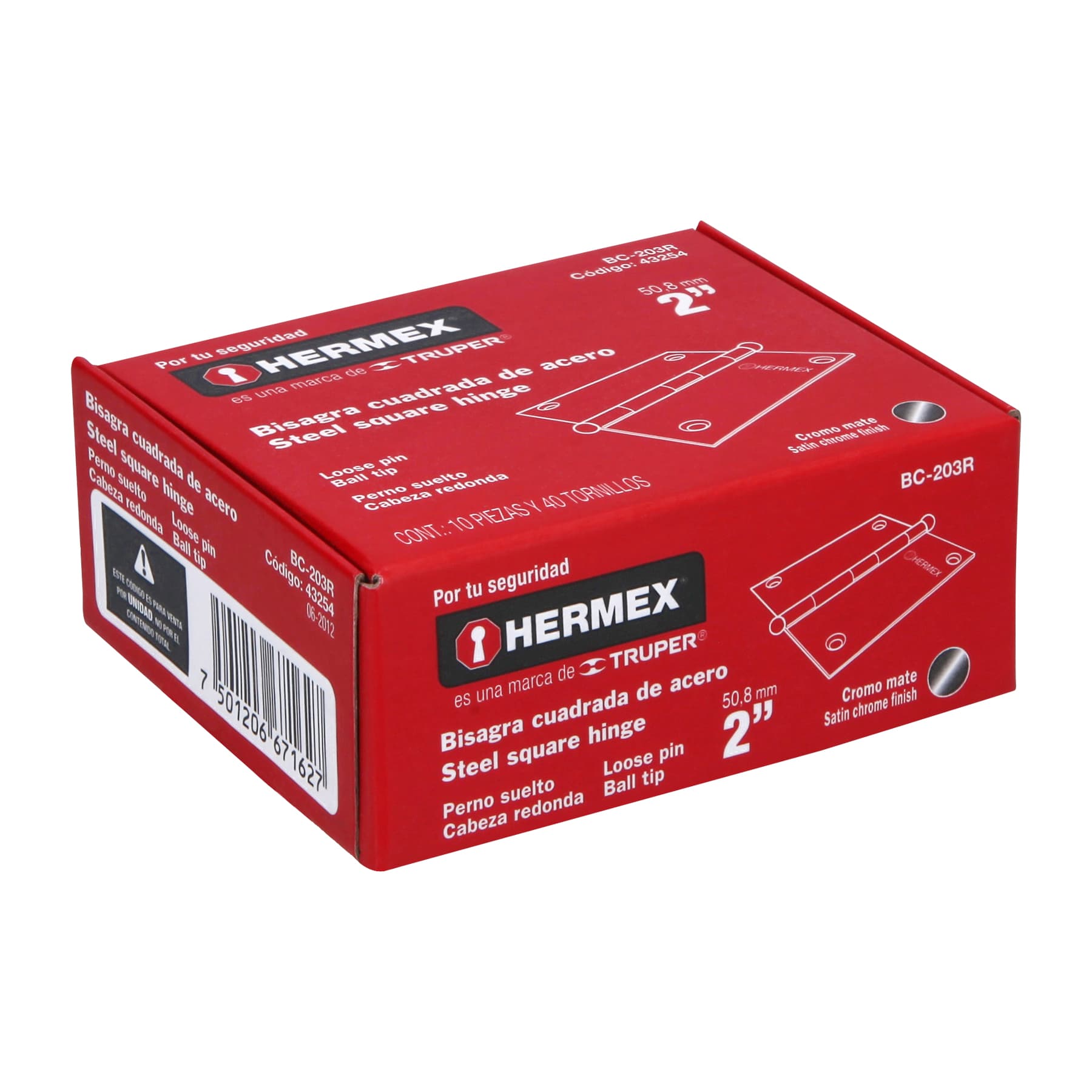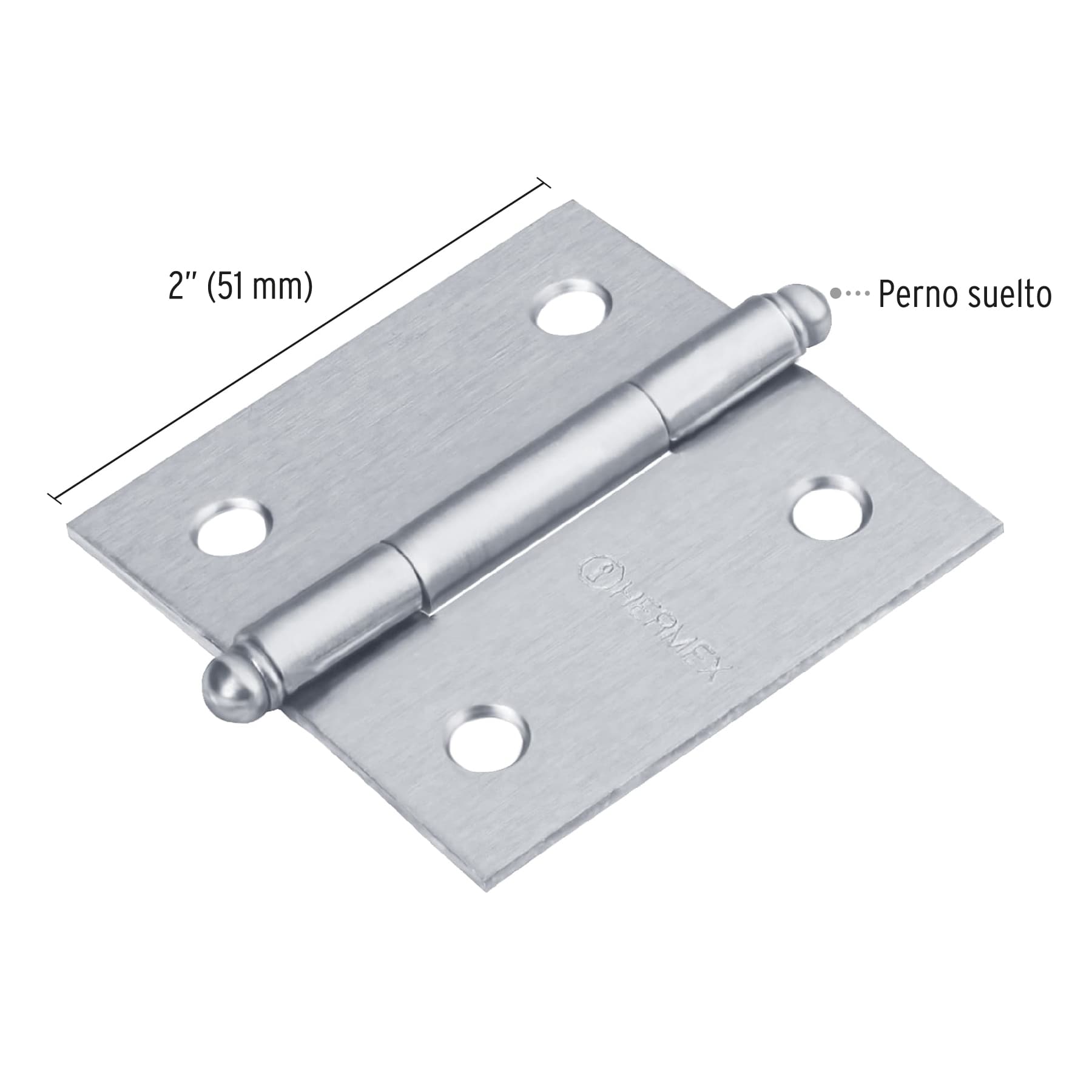 Bisagra cuadrada 2", acero cromo mate, redonda