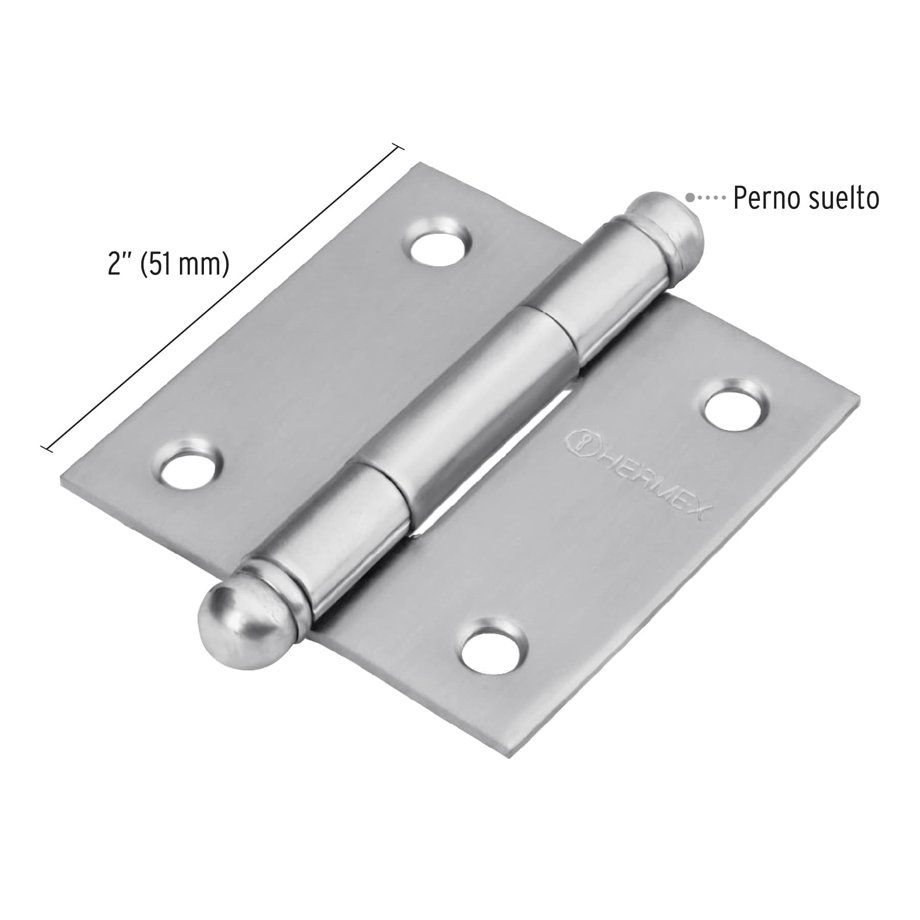 Bisagra cuadrada 2", acero inoxidable, redonda