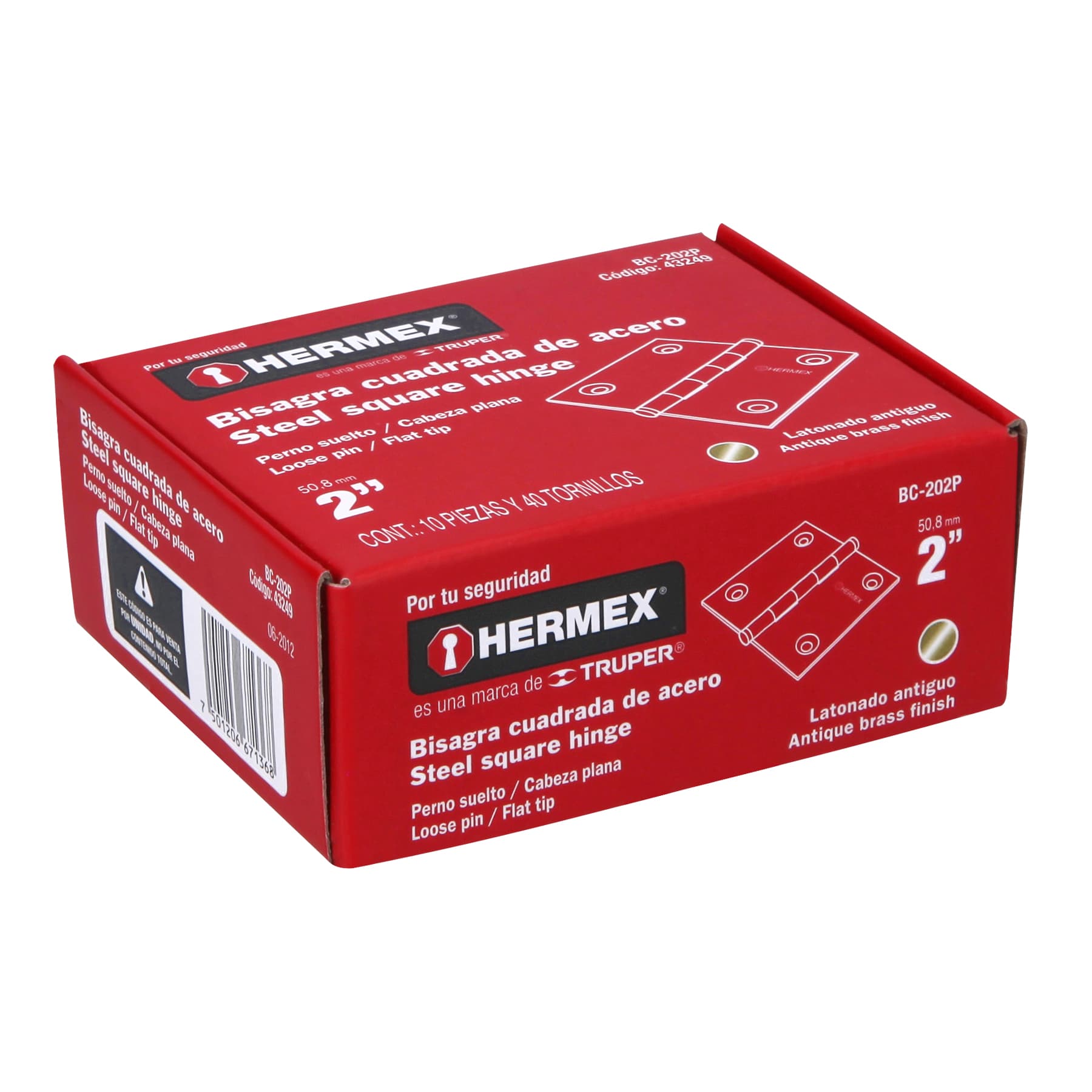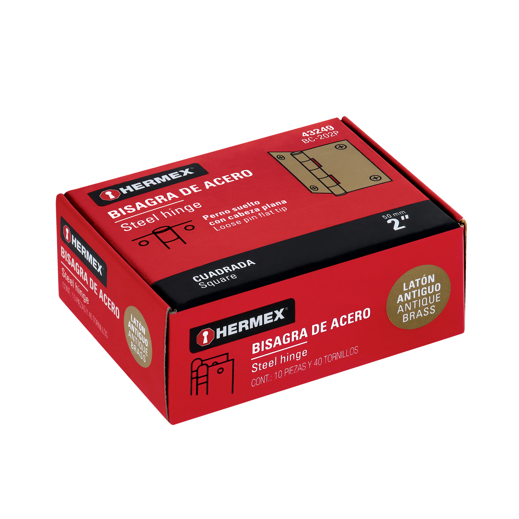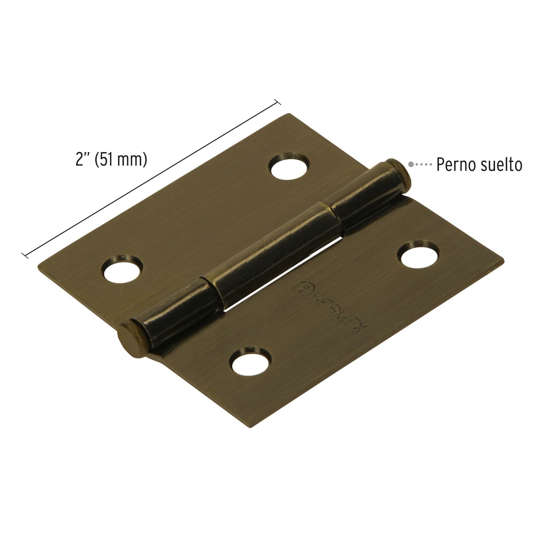 Bisagra cuadrada 2", acero latonado antiguo, plana