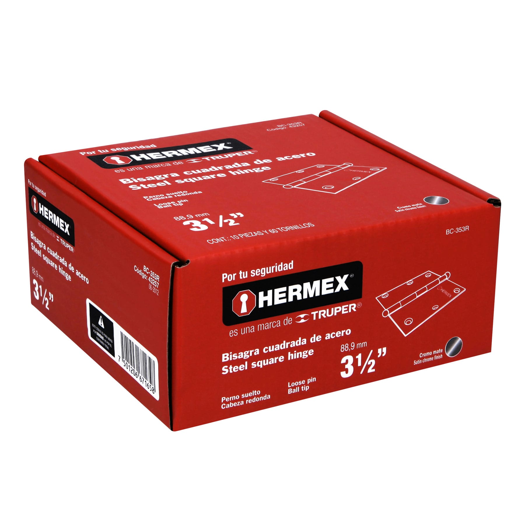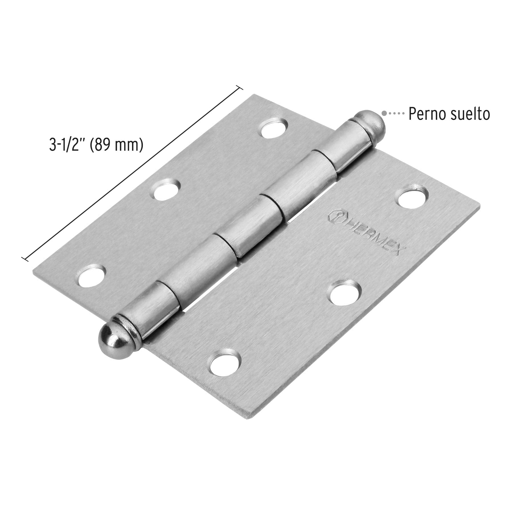 Bisagra cuadrada 3-1/2", acero cromo mate, redonda