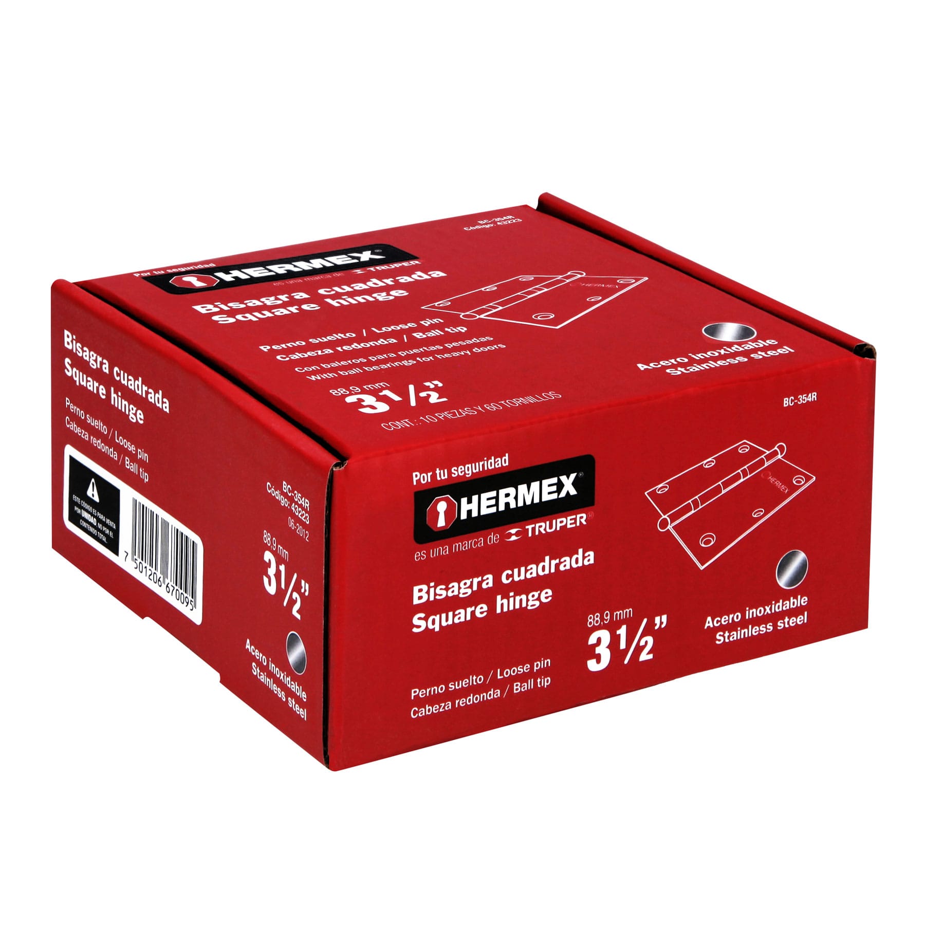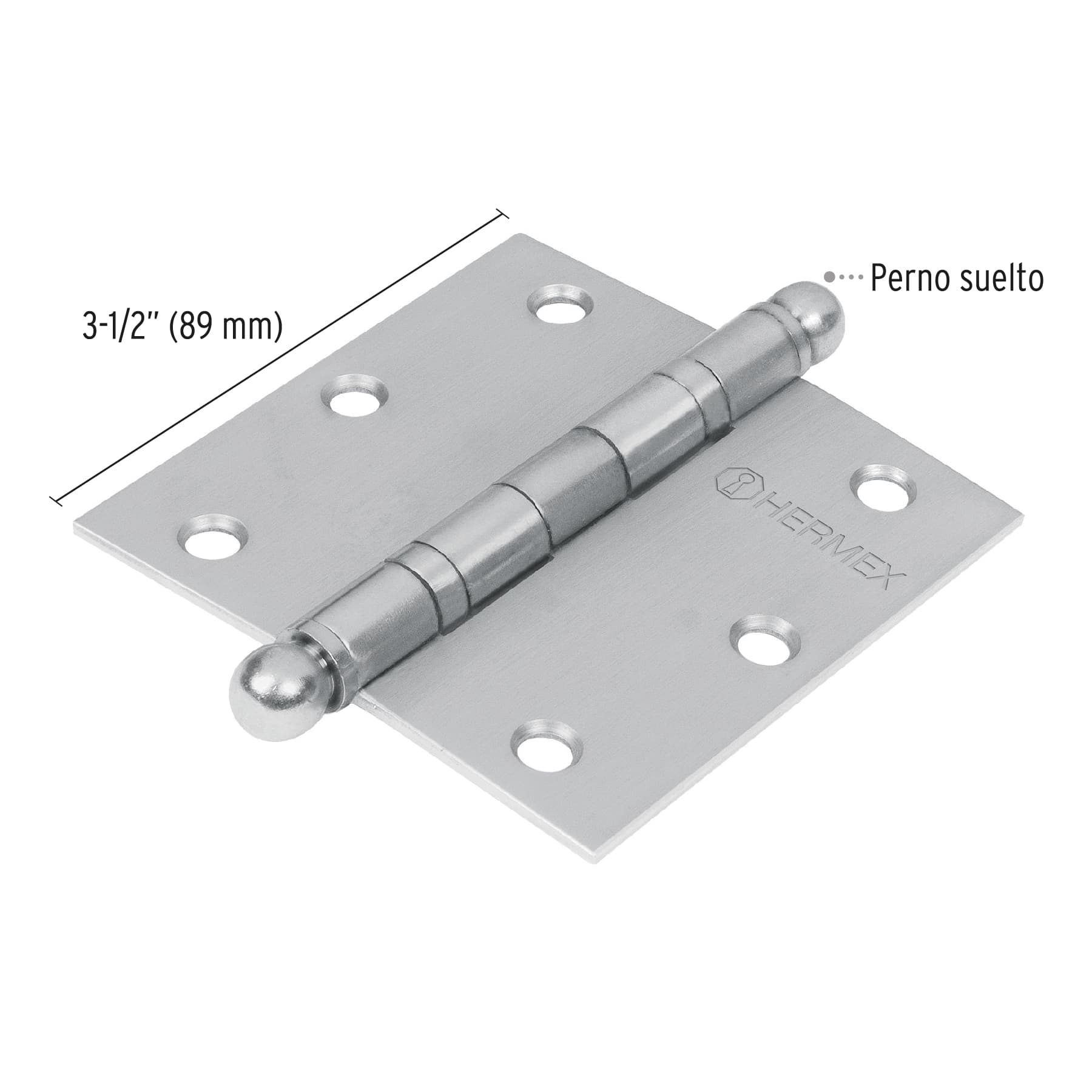 Bisagra cuadrada 3-1/2", acero inoxidable, redonda