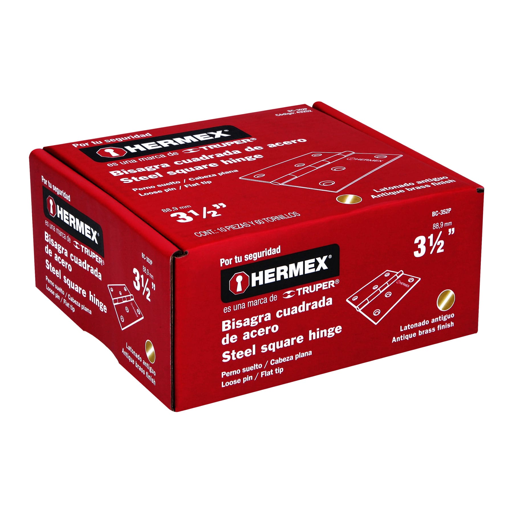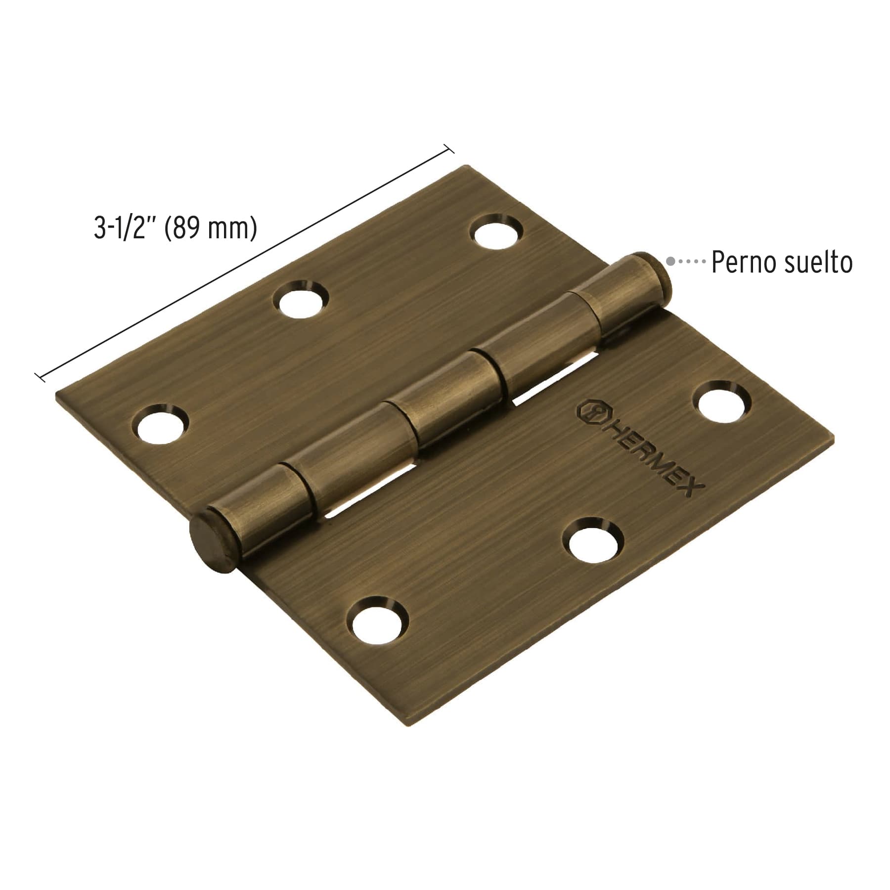 Bisagra cuadrada 3-1/2", acero latonado antiguo, plana