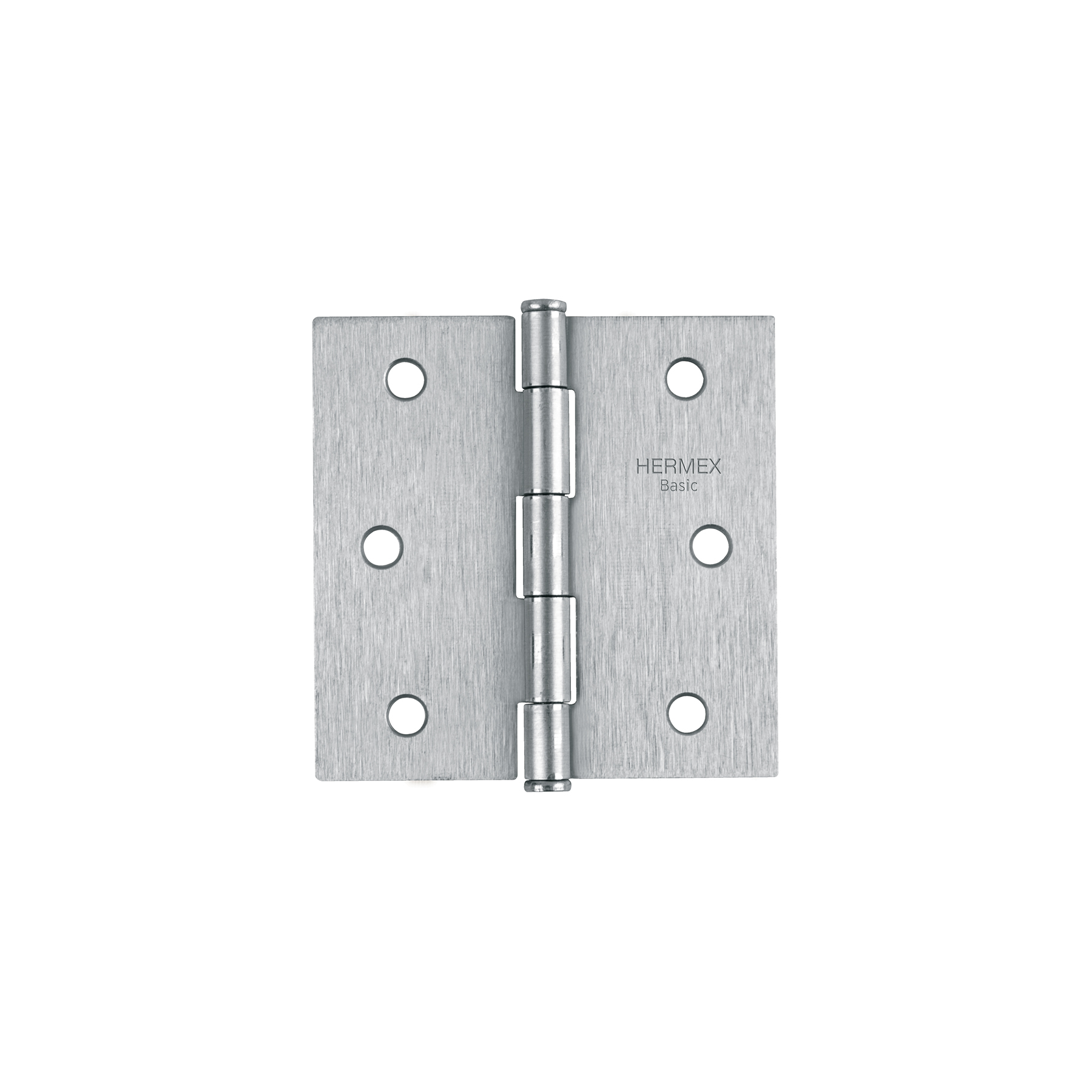 Bisagra cuadrada 3", acero cromo mate, plana, Hermex Basic