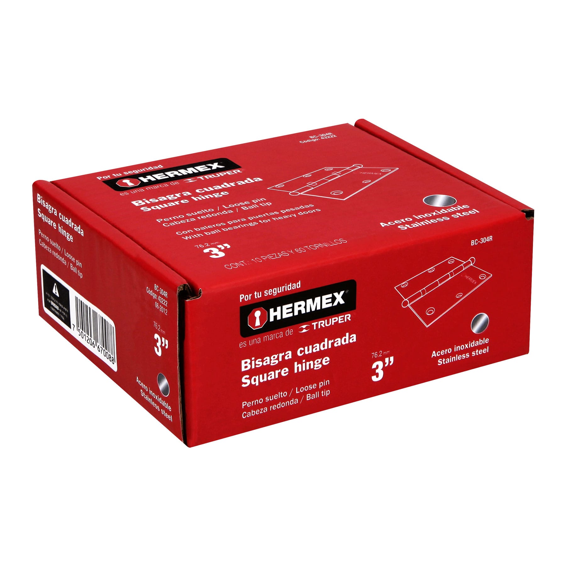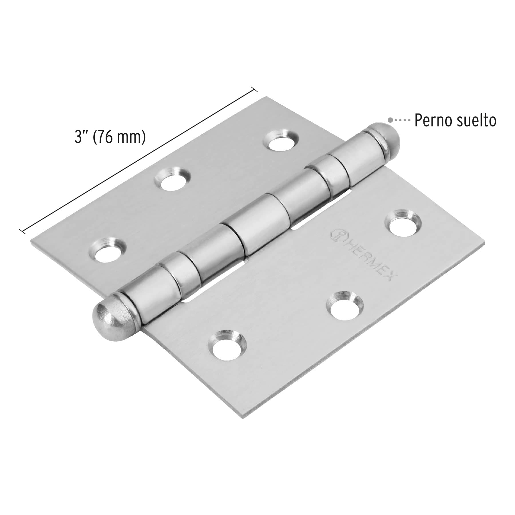 Bisagra cuadrada 3", acero inoxidable, redonda