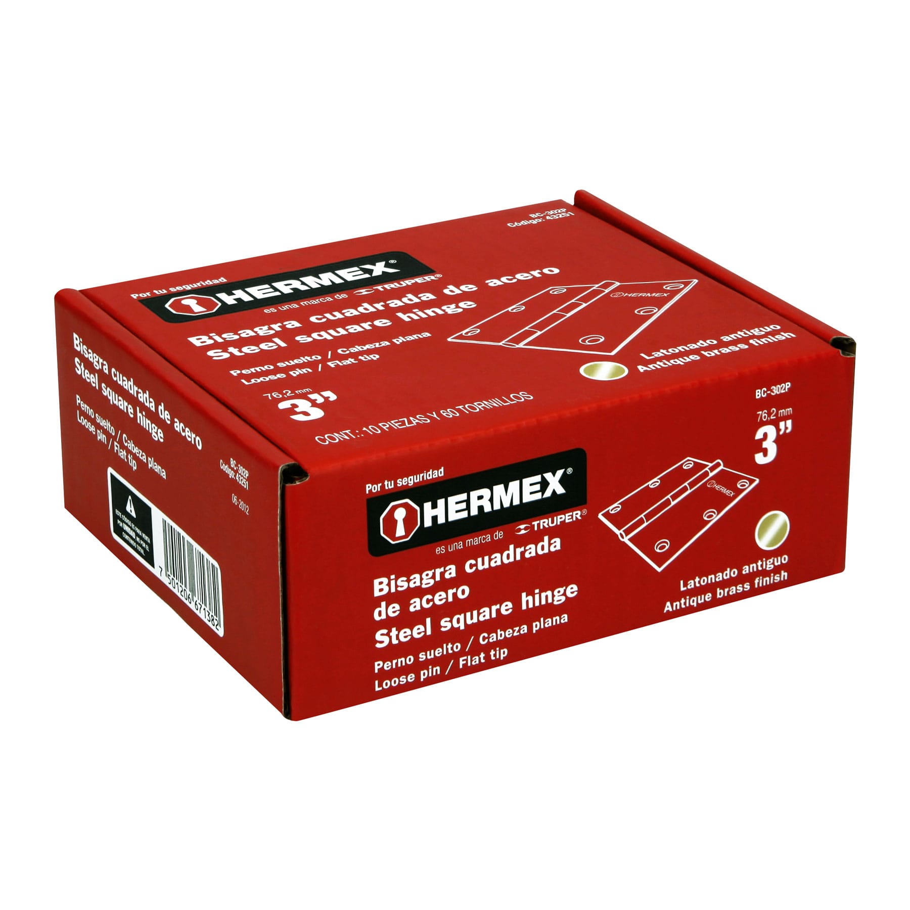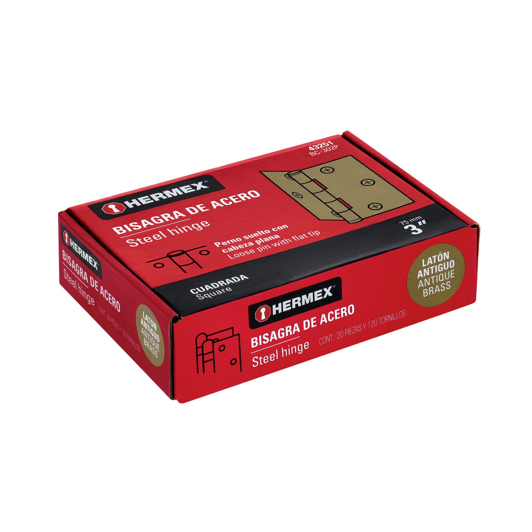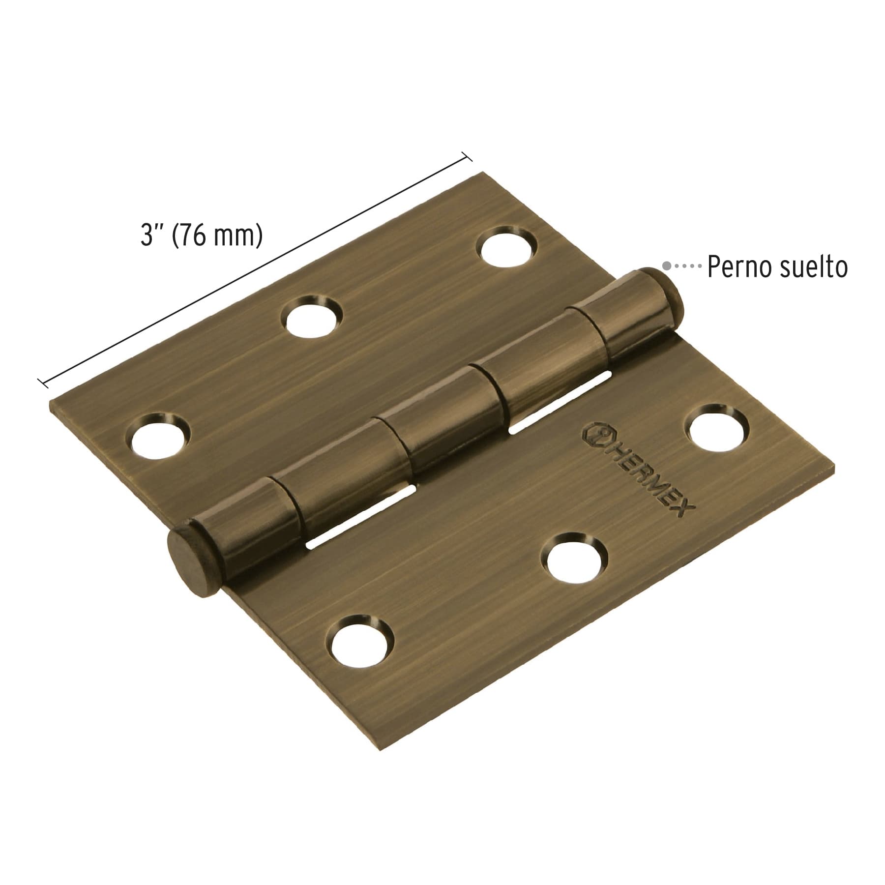 Bisagra cuadrada 3", acero latonado antiguo, plana