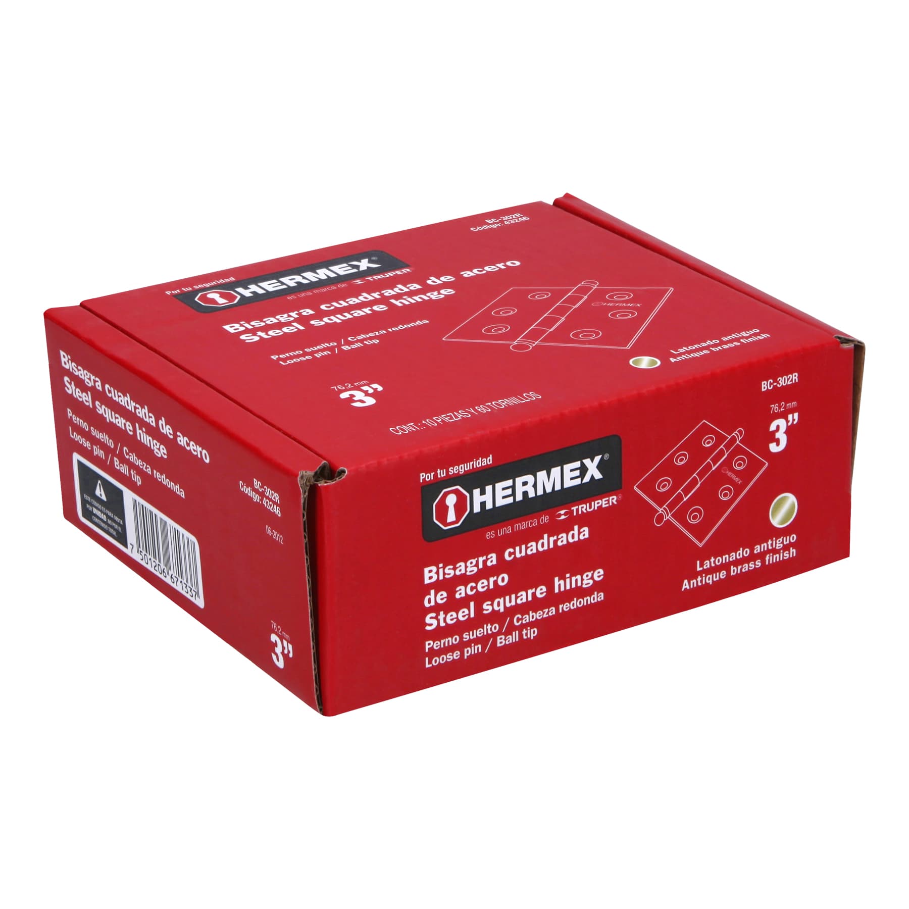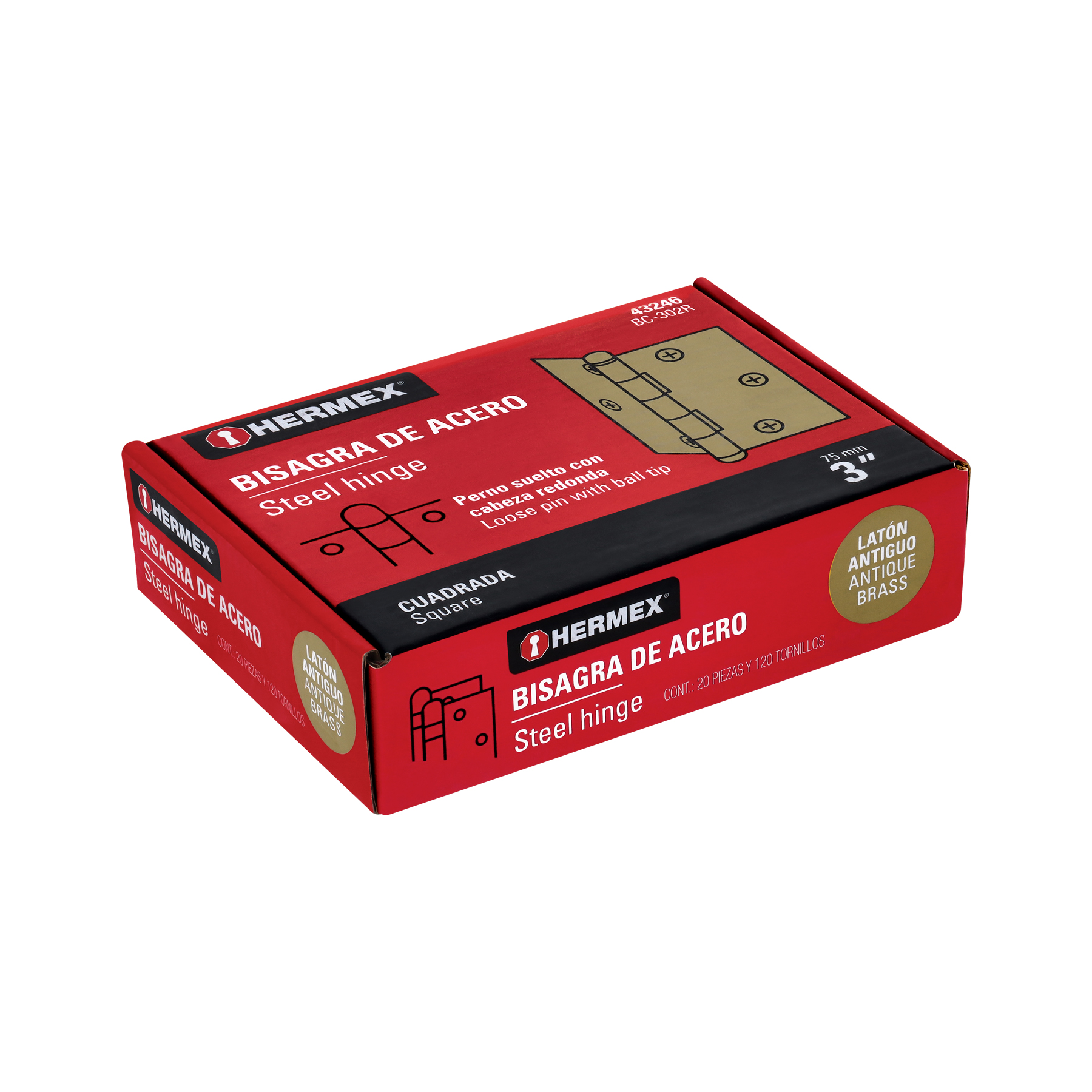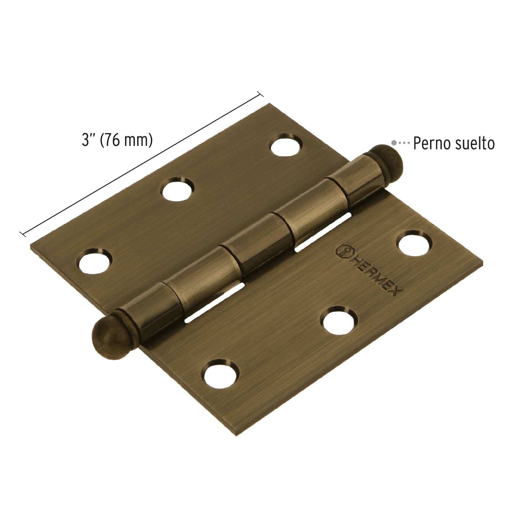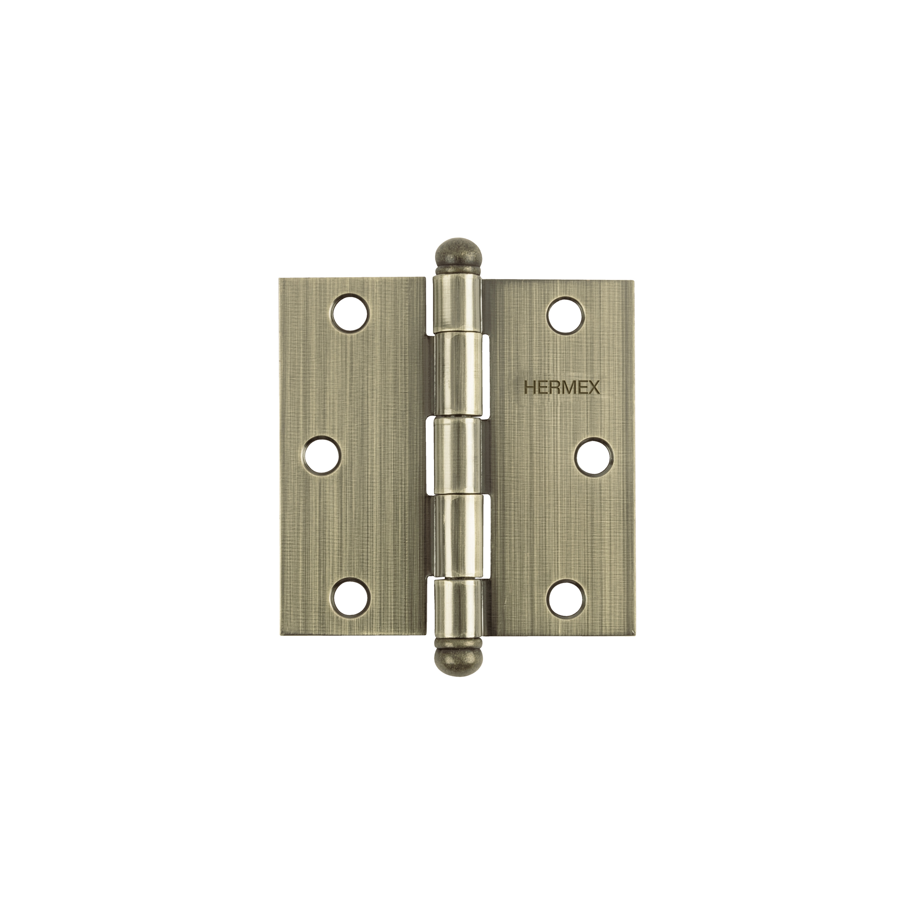 Bisagra cuadrada 3", acero latonado antiguo, redonda