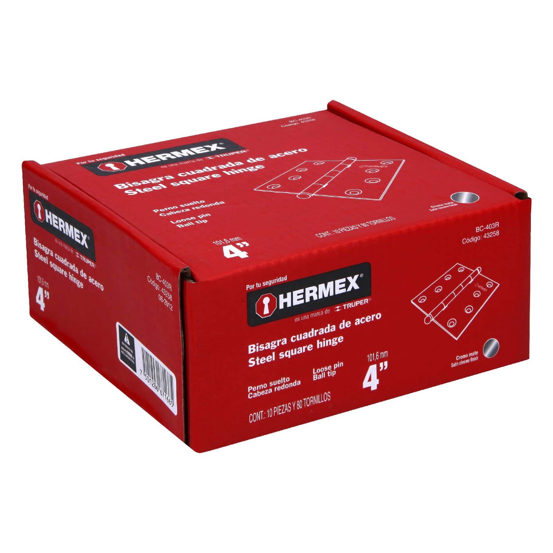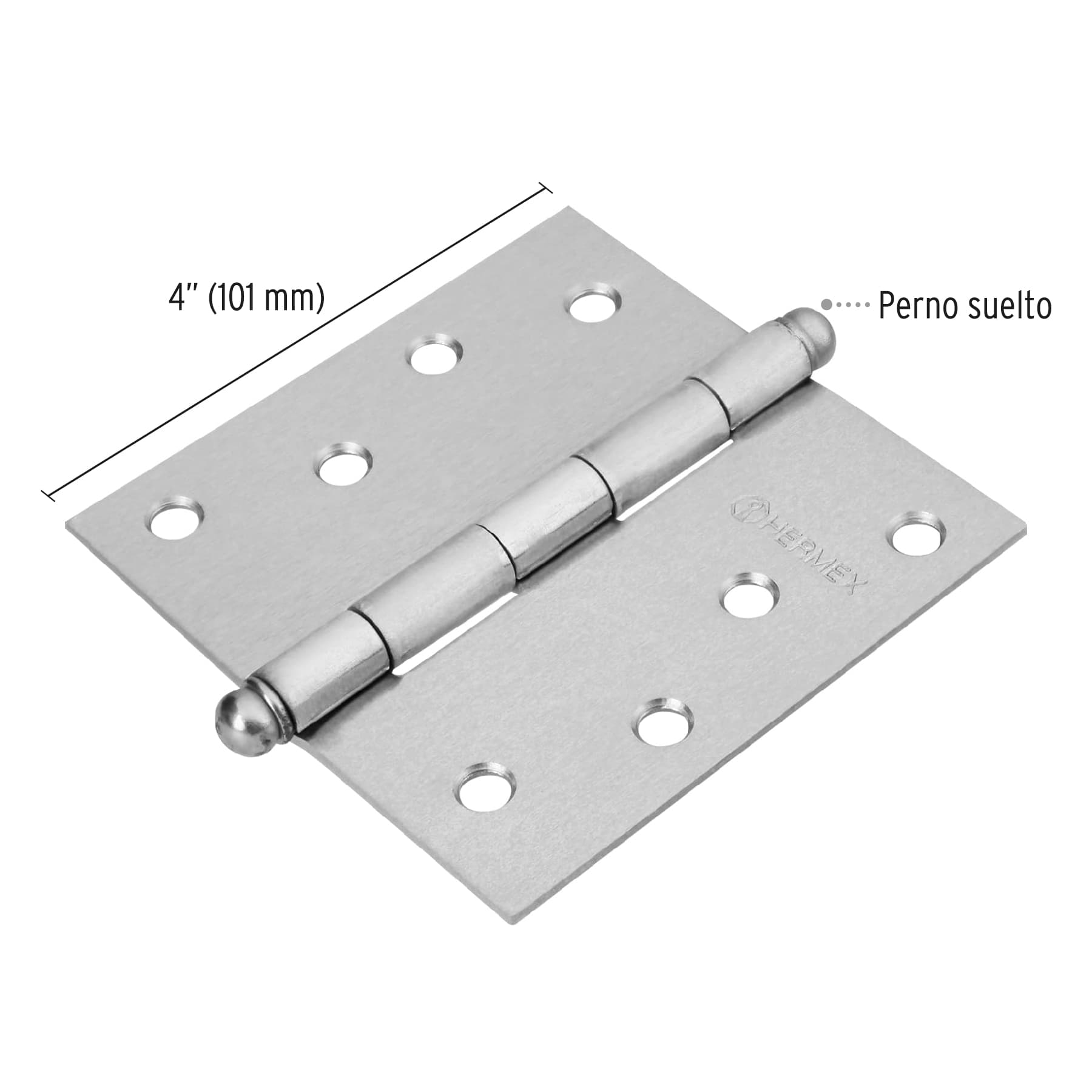 Bisagra cuadrada 4", acero cromo mate, redonda