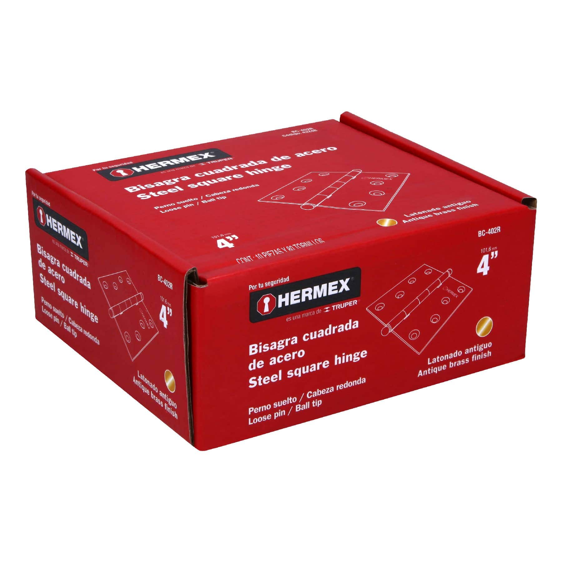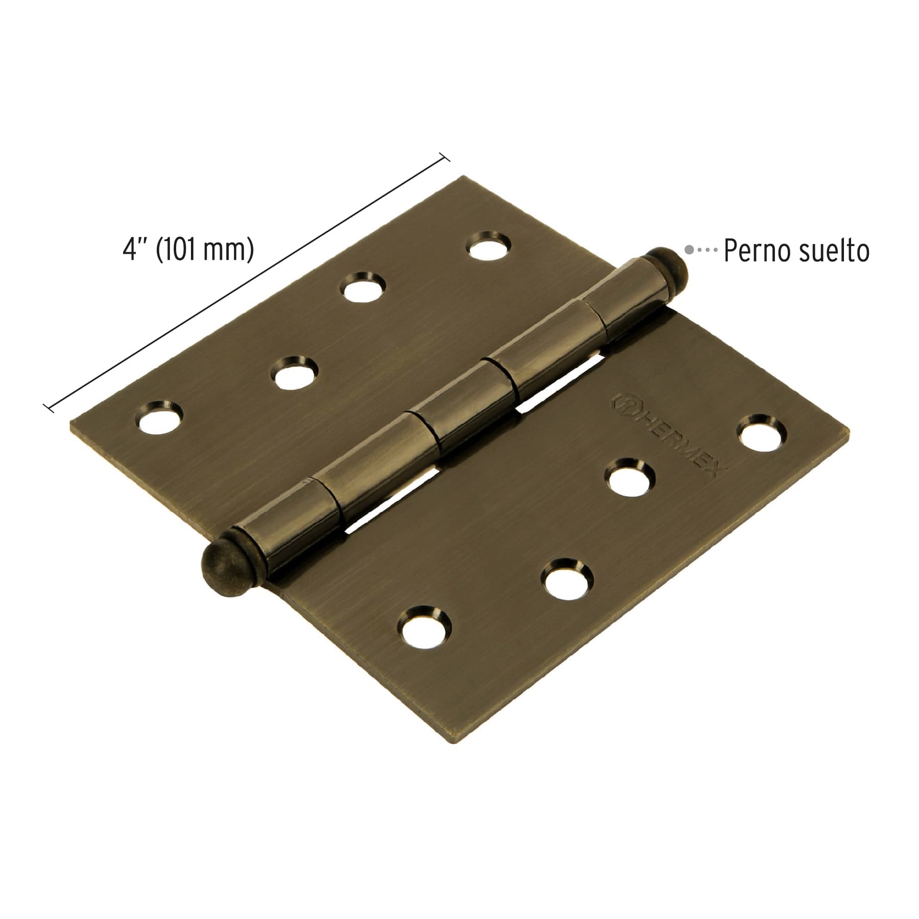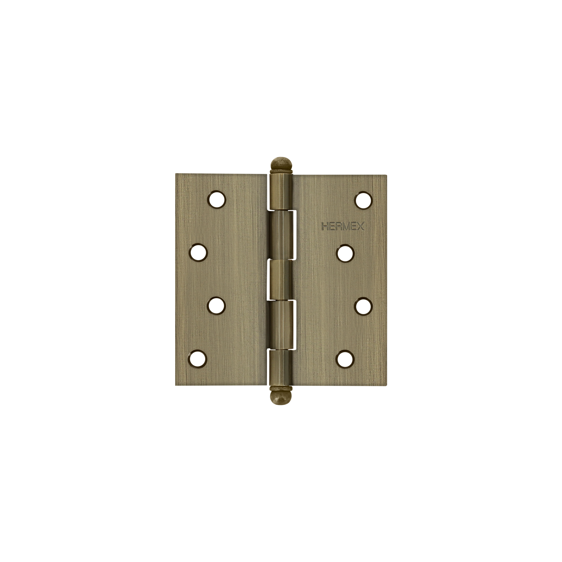 Bisagra cuadrada 4", acero latonado antiguo, redonda
