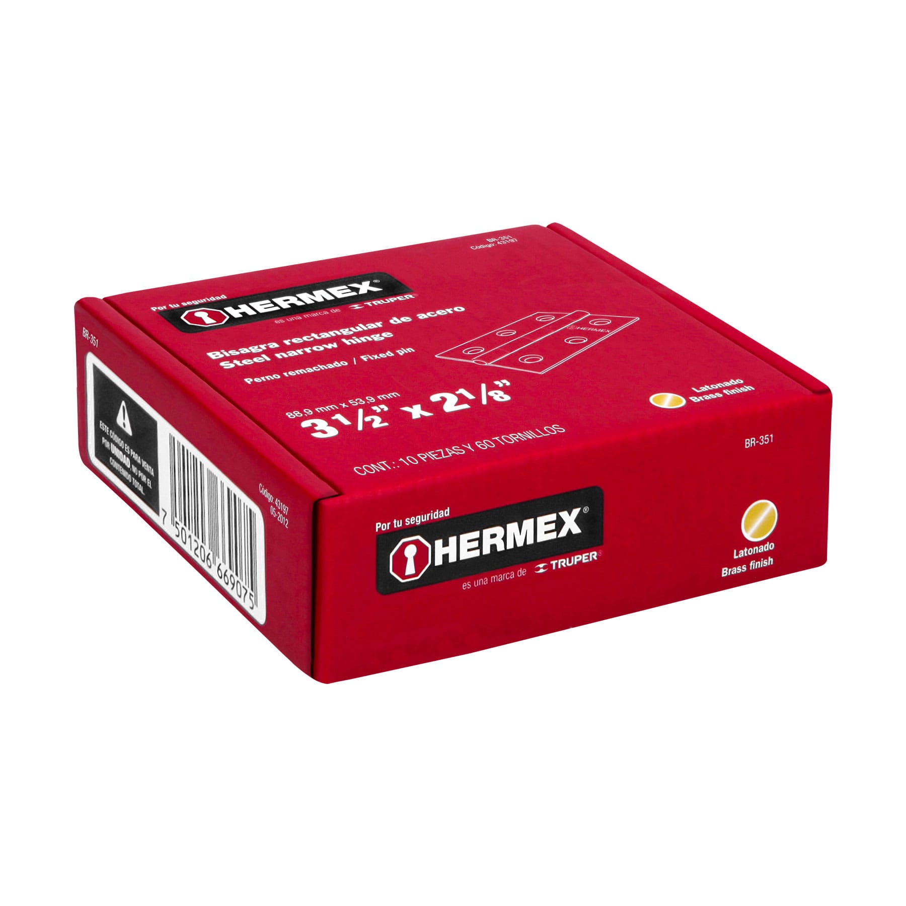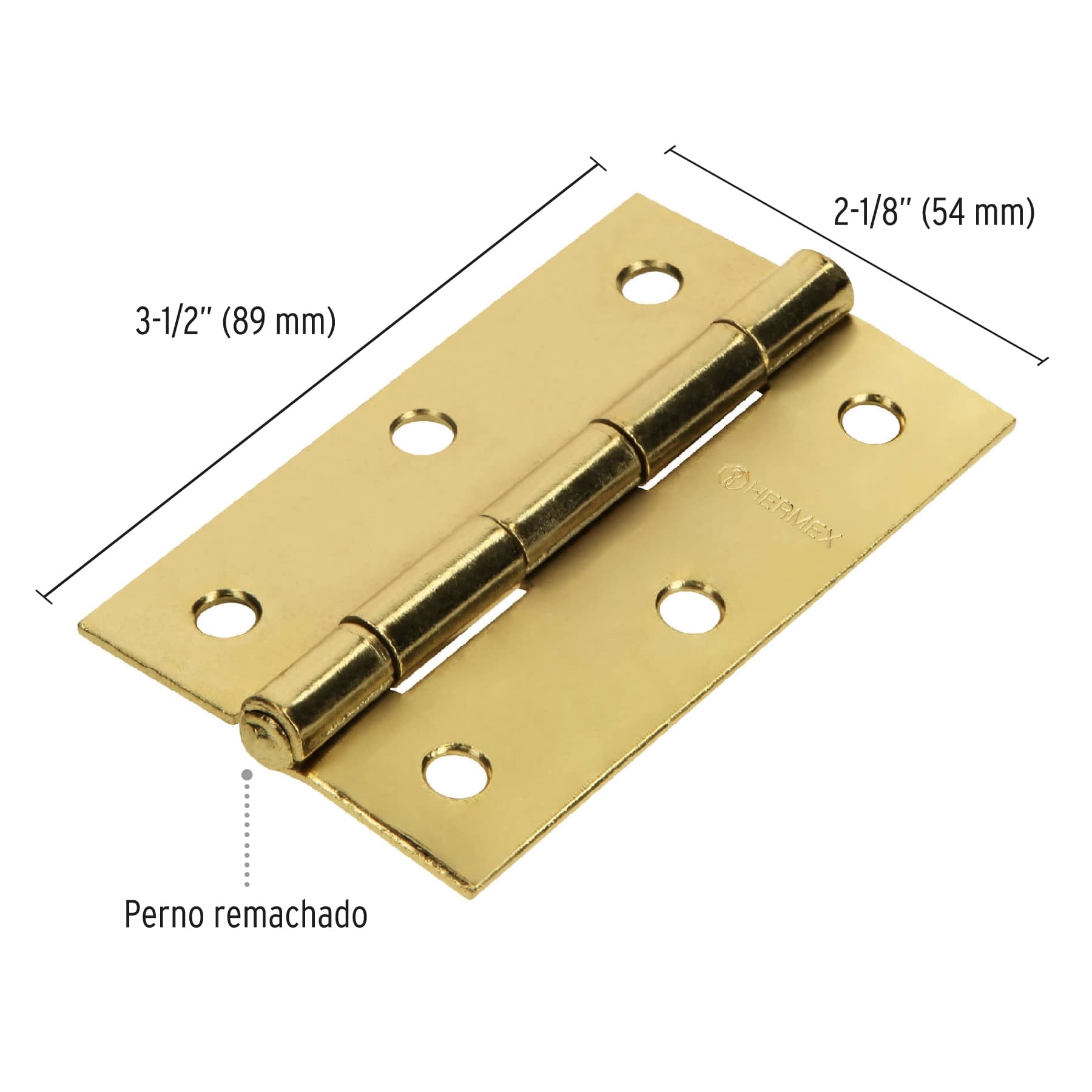 Bisagra rectangular 3-1/2", acero latonado