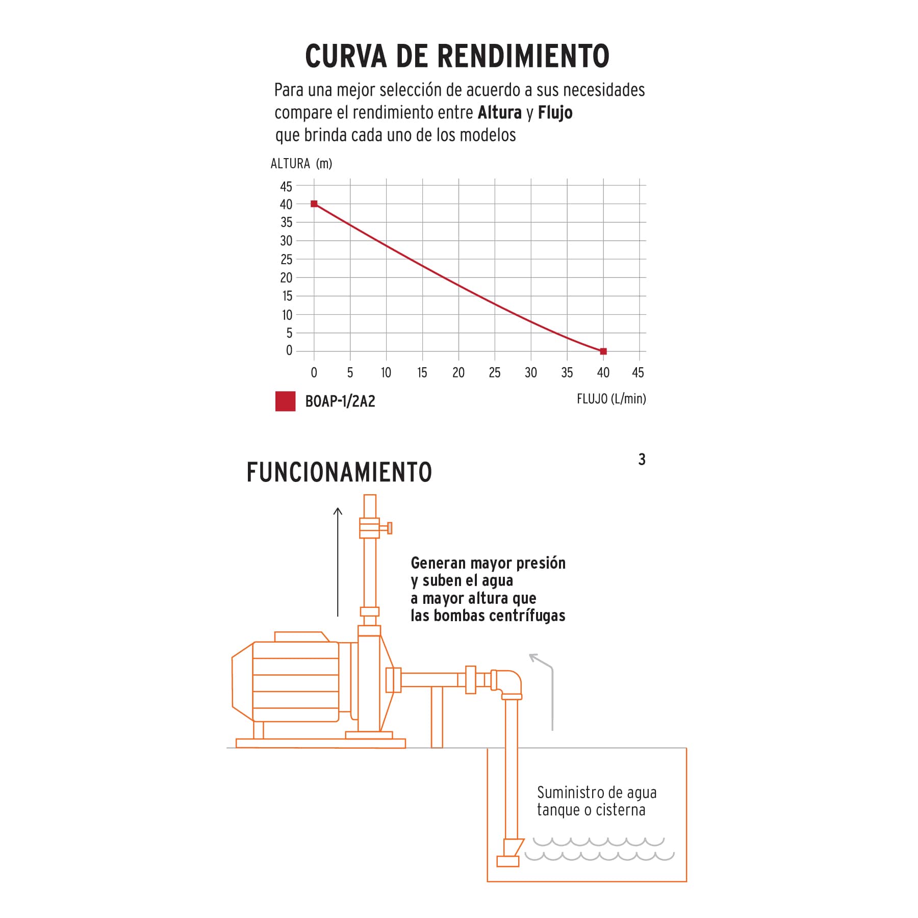 - Genera mayor presión y sube el agua a una mayor altura que las bombas centrífugas, sin embargo, su caudal o flujo es menor