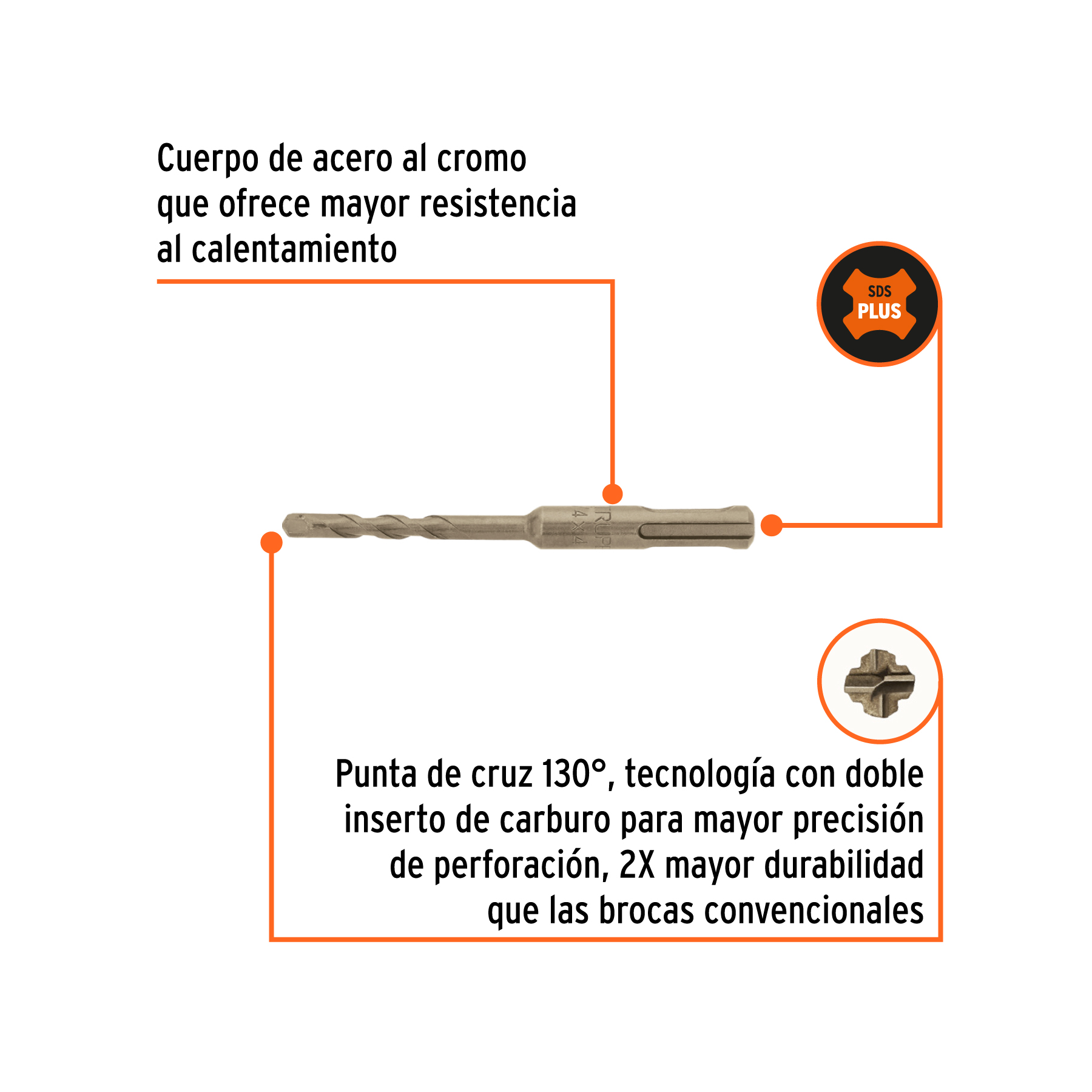 - Puntas de cruz, tecnología con doble inserto de carburo para mayor precisión de perforación, 2x mayor durabilidad que las brocas convencionales
