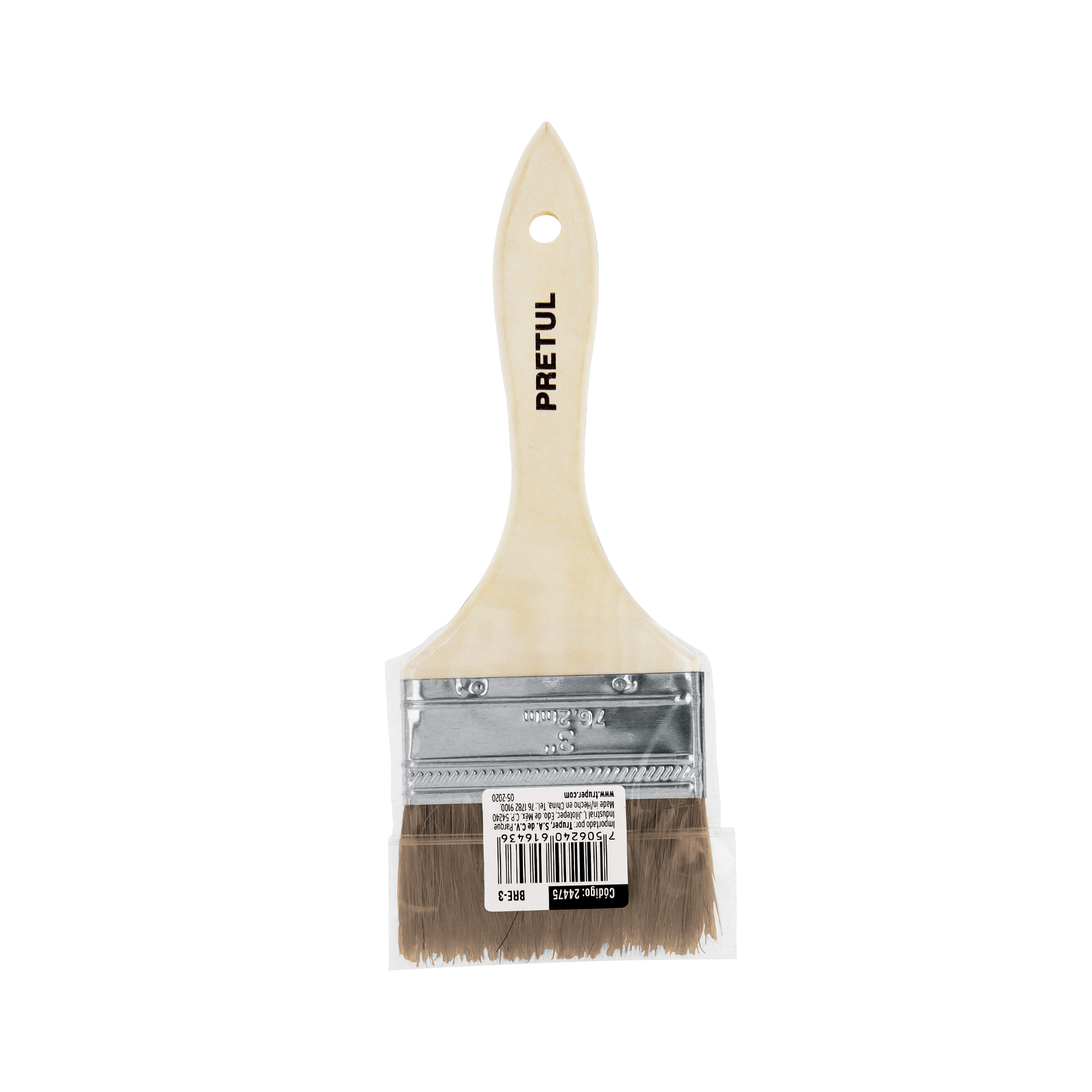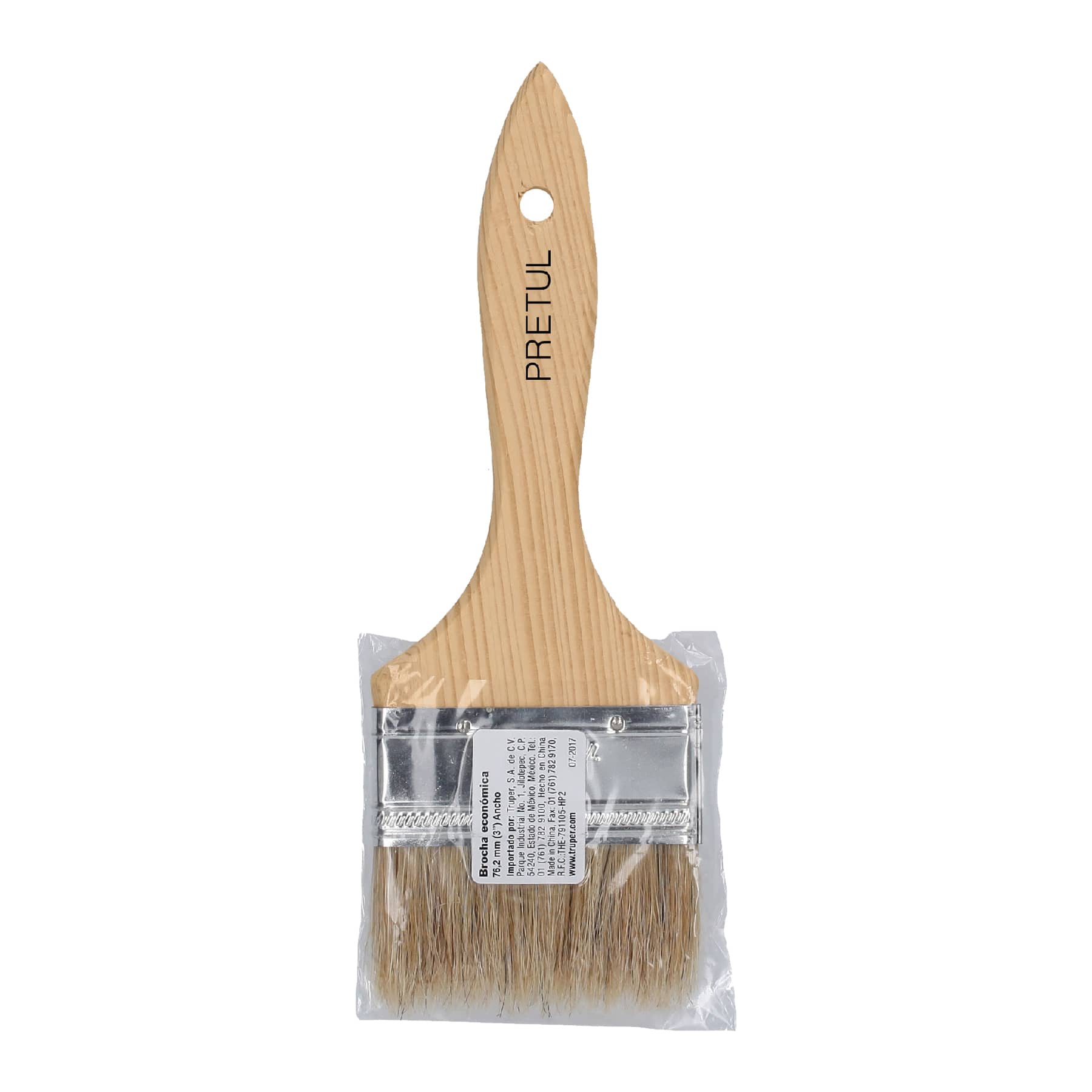 Brocha económica, mango de madera, 3", Pretul