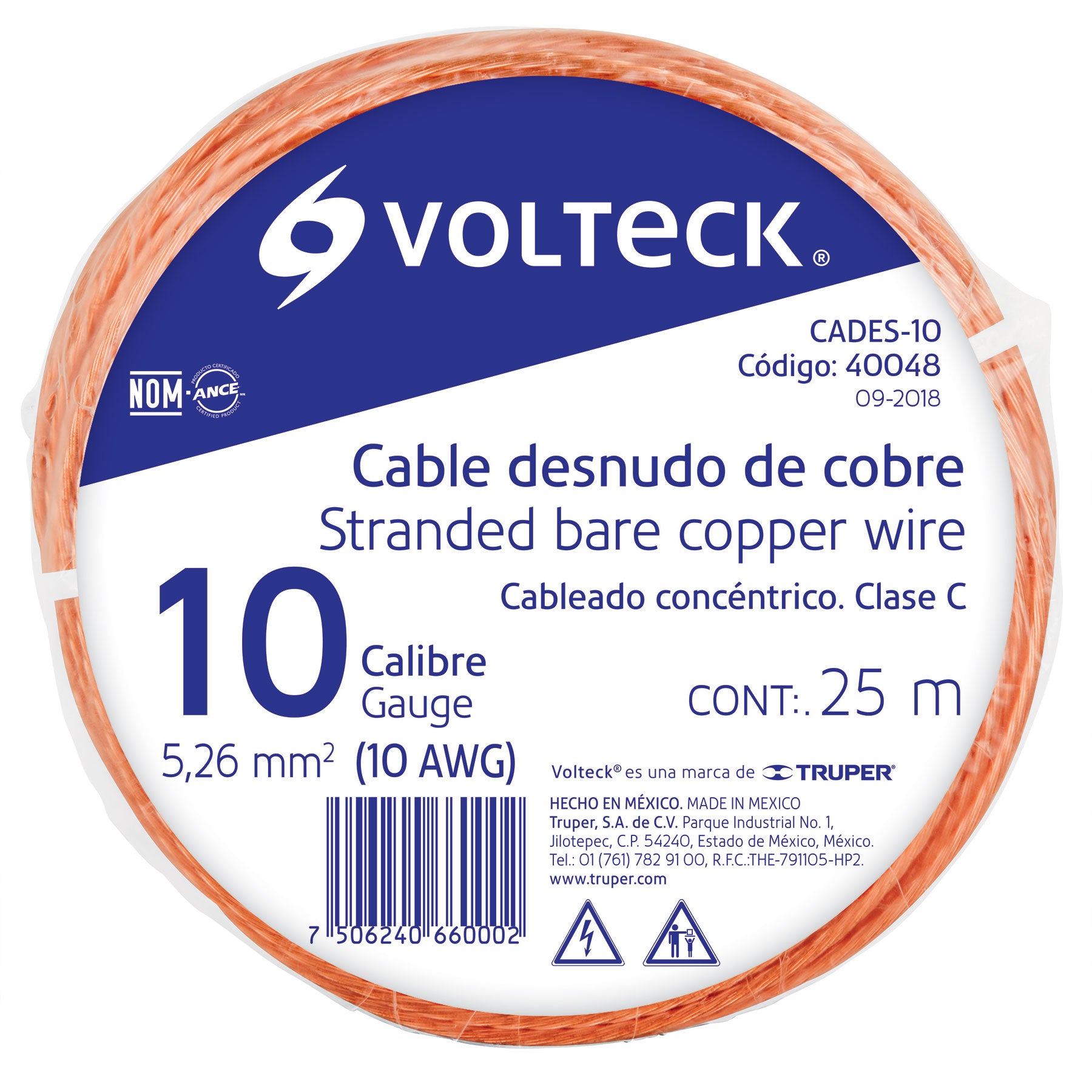 Cable cobre desnudo calibre 10 AWG, 25 m