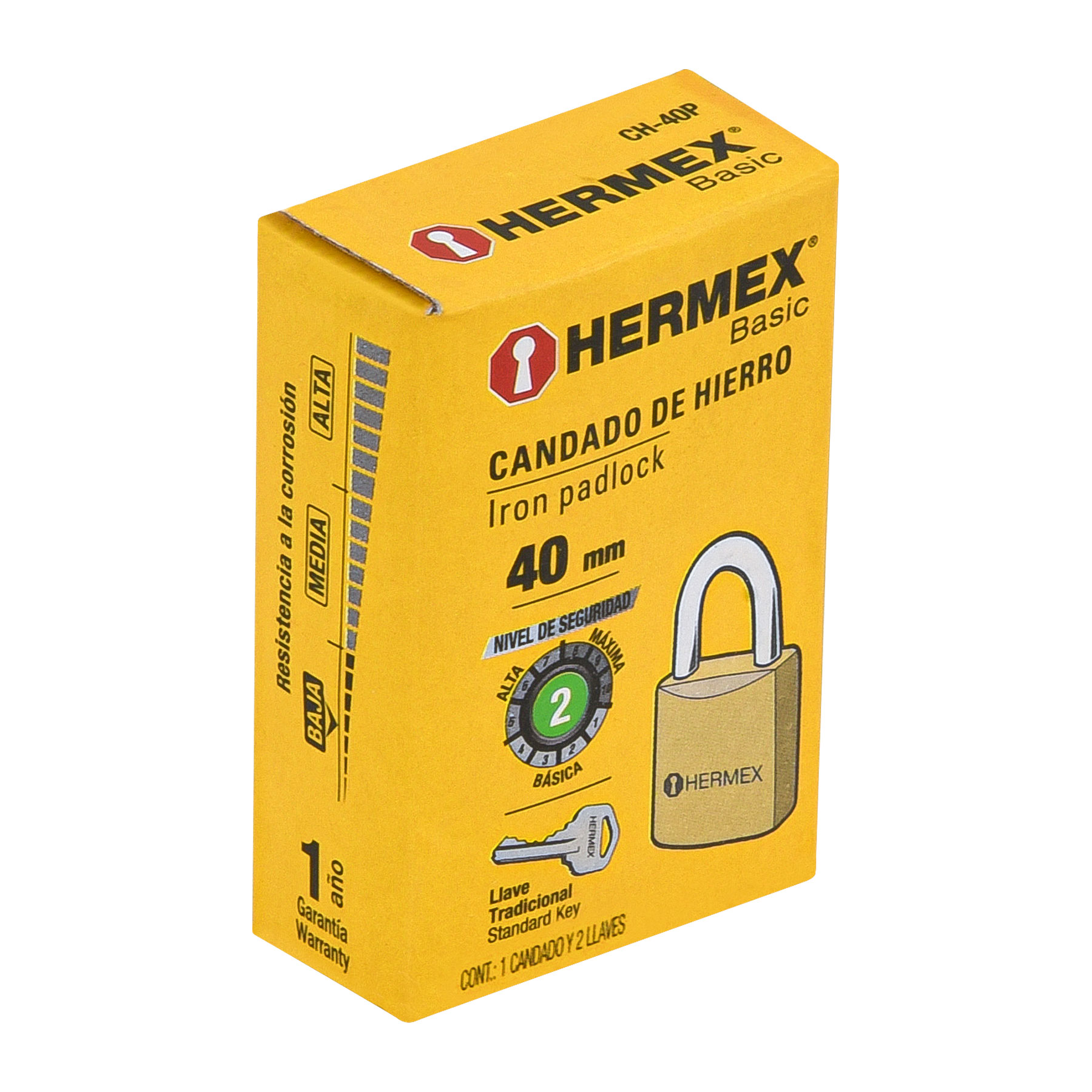 Candado de hierro, color latón, 40mm, corto, caja, Basic
