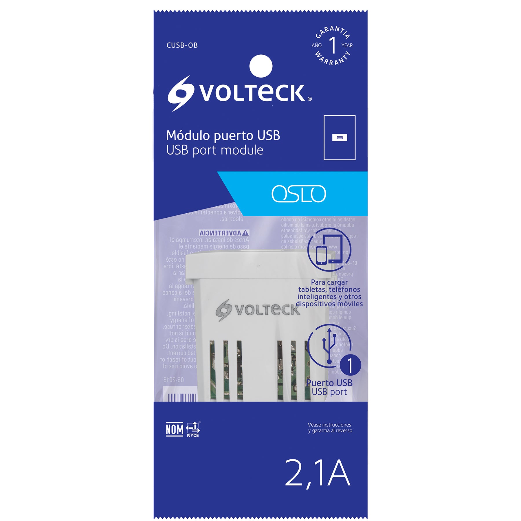 Cargador USB a la pared, 2.1A, línea Oslo, color blanco