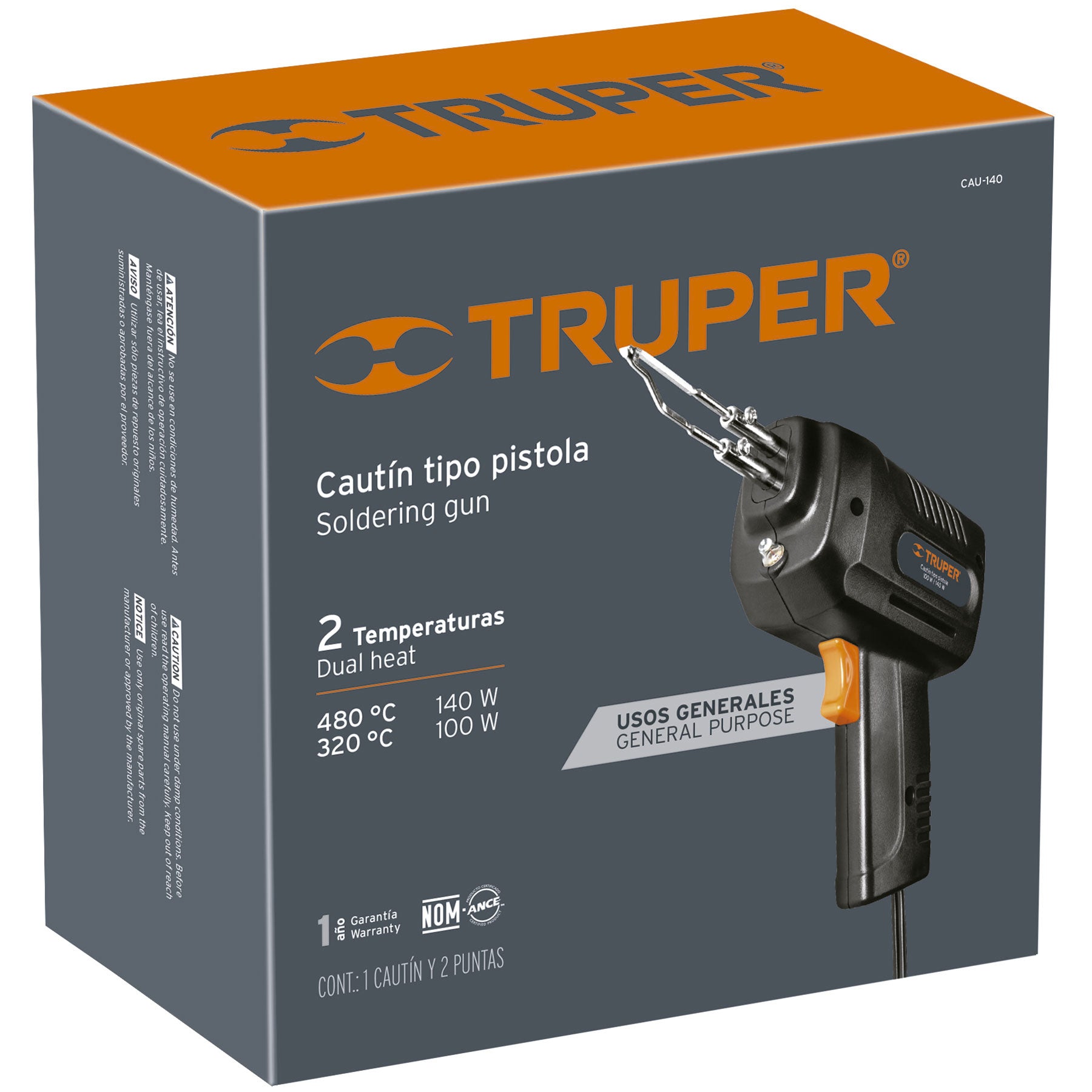 Cautín tipo pistola de 140 W, 2 temperaturas