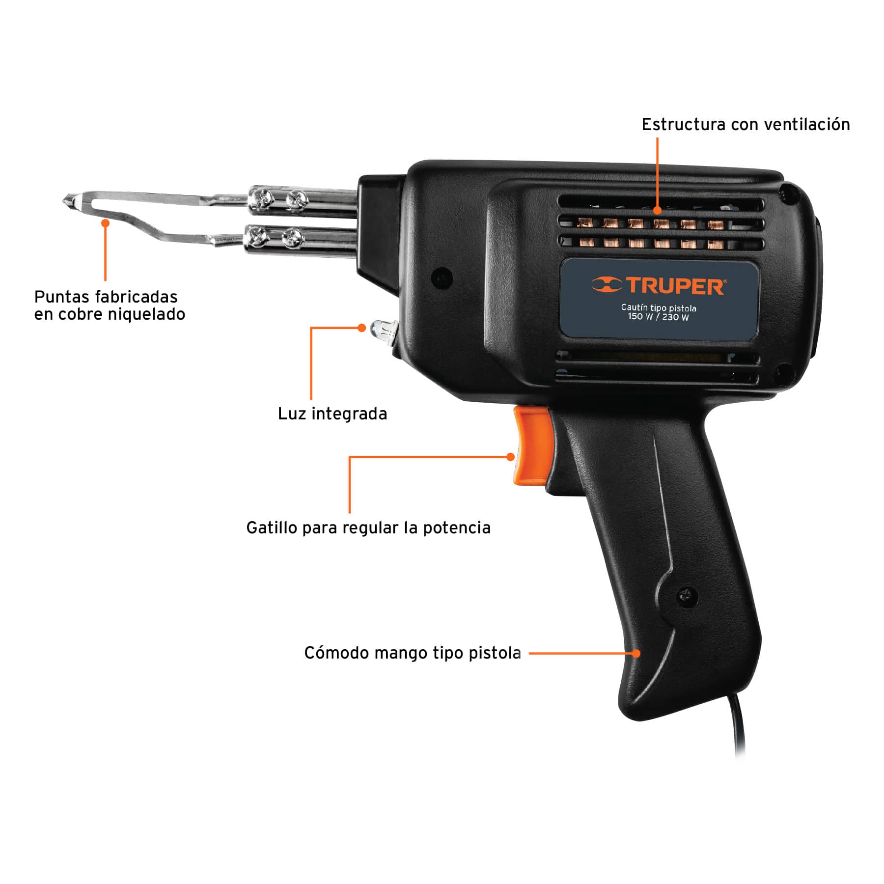 Cautín tipo pistola de 230 W, 2 temperaturas