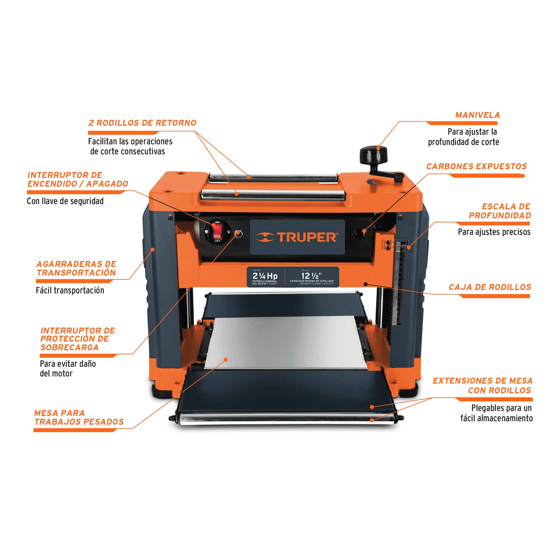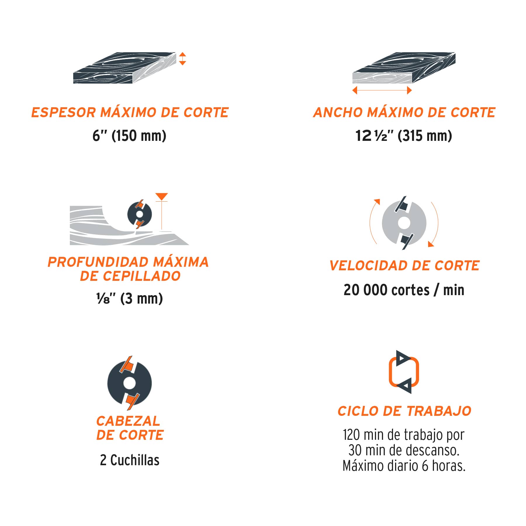 - Profundidad máxima de cepillado 1/8" (3 mm)