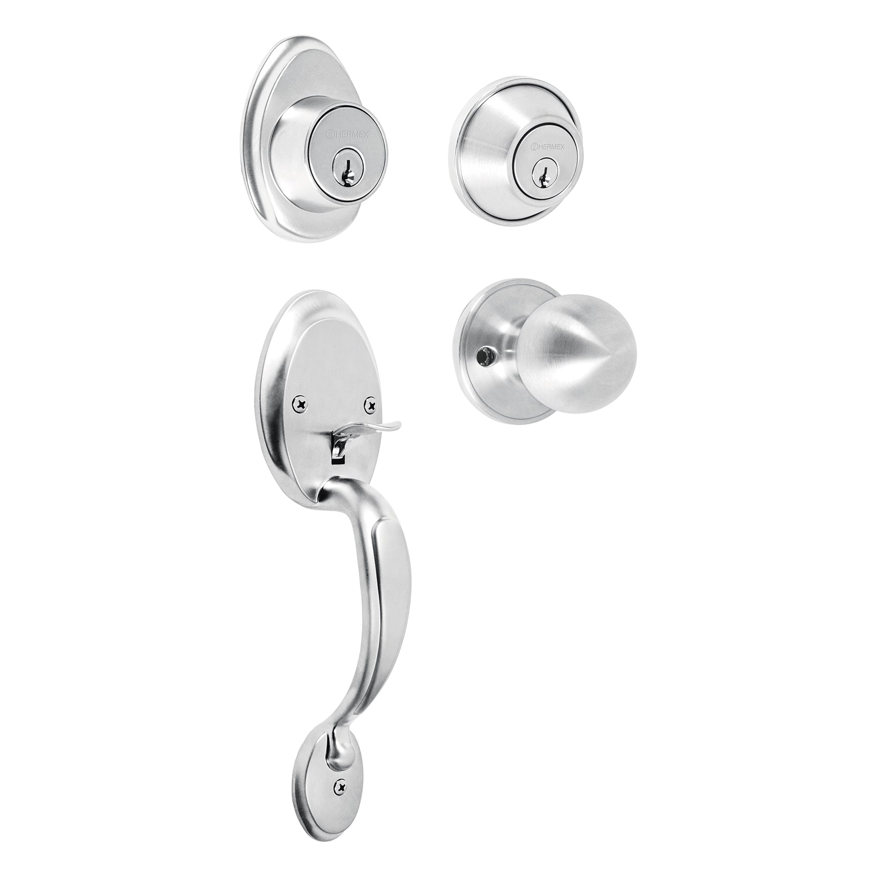 Cerradura entrada, cromo mate, doble, pomo, Hermex Basic